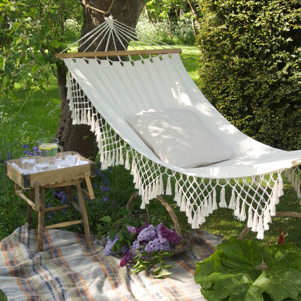 I tradiční houpací sítě můžete oživit. Např. přes síť zavěšenou mezi dvěma stromy můžete natáhnout příjemná světýlka, která dotvoří romantiku. Nebo zavěste houpací síť mezi stěny pergoly kolem zahradního topeniště. Případně, pokud bydlíte na kopci, umístěte ji na vrch s výhledem na celou zahrádku. Houpací síť můžete připevnit dokonce i mezi sloup zahradního přístřešku a strom.