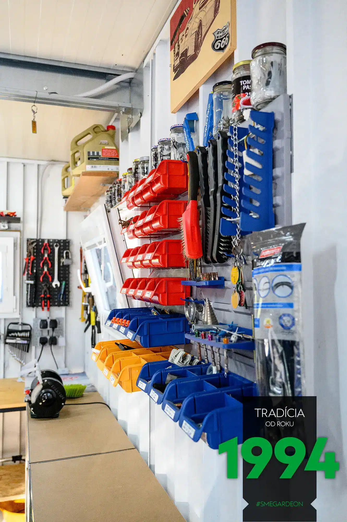 Zahradní nářadí má doma téměř každý. Většina lidí má sekačku v jednom koutě, hrábě ve druhém a kolečko ve středu garáže, protože jinam se nevešlo. Co s tím? Lopatu, hrábě, motyku a podobné nářadí opřete na jedno místo u stěny. Můžete použít nápadité oddělovače z PVC trubek nebo z palety. Kolečko také můžete připevnit na zeď pevnými háky, aby vám nevadilo celou svojí šířkou. Buďte tvořiví!