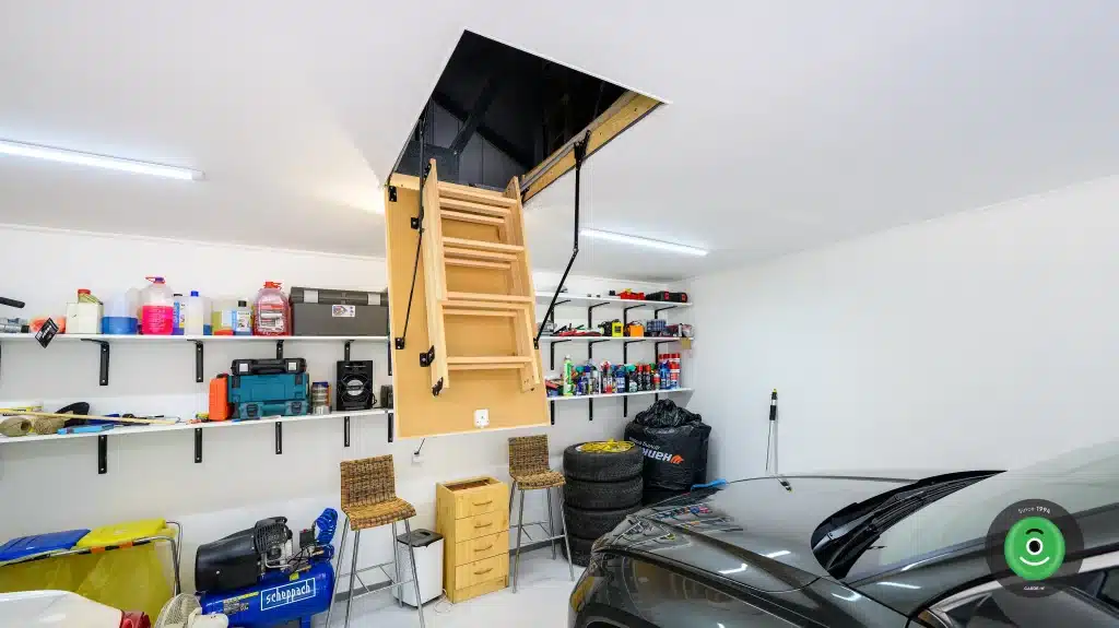 Montovaná garáž nebo zahradní domek se šikmou střechou je stylovou volbou, která se hodí zejména do venkovské zástavby nebo k rodinnému domu s podobným typem zastřešení. Sedlová střecha však nabízí i další prostor, který lze využít pro praktické skladování, a to jak v zahradním domku, tak v garáži. Stačí do stropu instalovat tzv. půdní schody, tedy poklop spojený se skládacím žebříkem, po kterém se lze dostat do půdního prostoru.