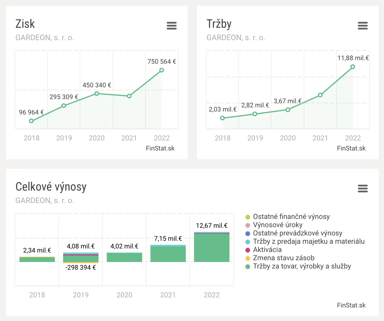 V letech 2019 až 2022 dosáhne GARDEON průměrného ročního růstu až 61 %, přičemž naše tržby vzrostou z 2,8 milionu eur v roce 2019 na téměř 11,88 milionu eur v roce 2022.