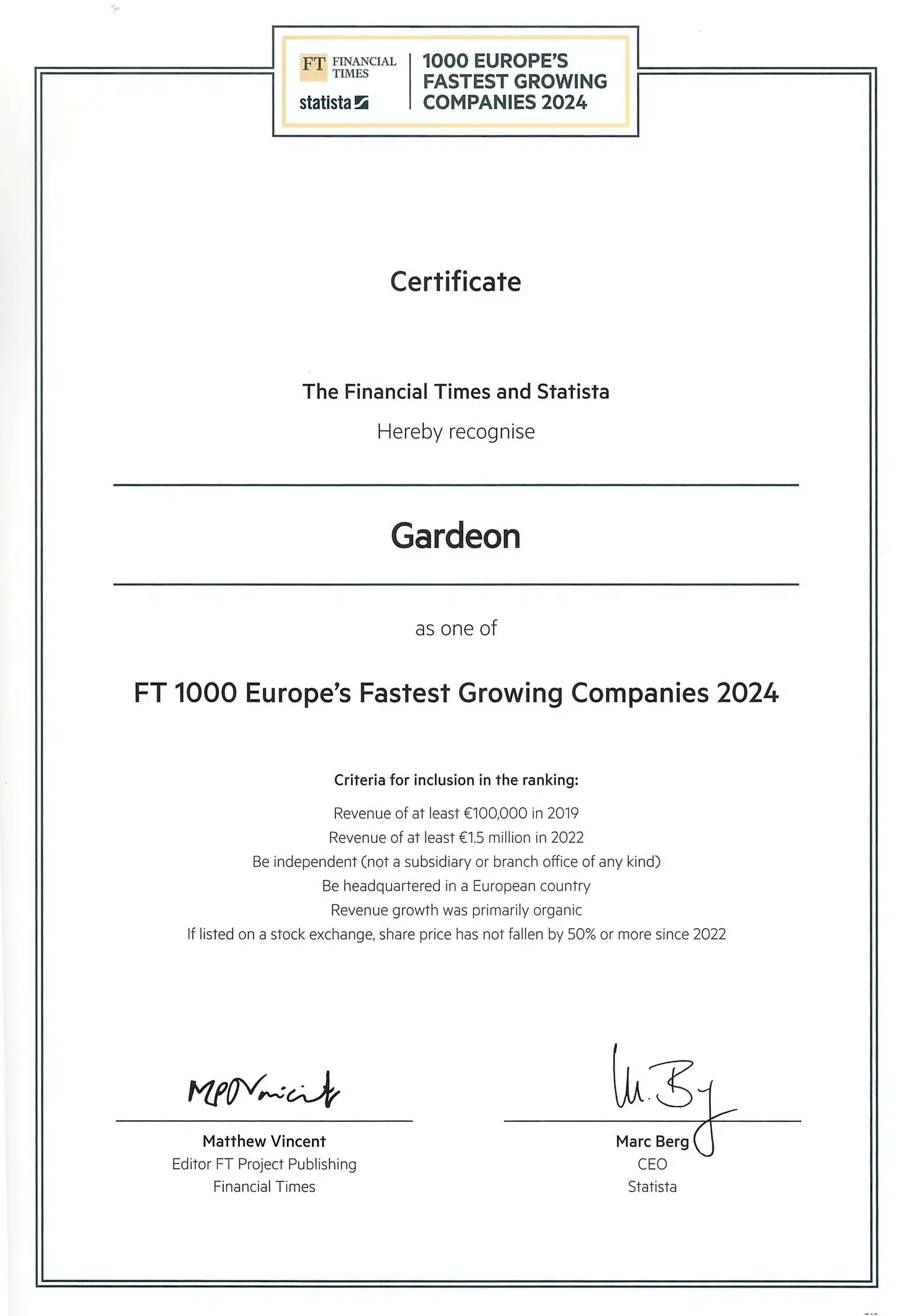 GARDEON letos obstál v celoevropské konkurenci skutečně se ctí – umístili jsme se přibližně uprostřed hodnoceného pole, na 510. místě. Oproti loňskému 719. místu jsme si tak polepšili o více než 200 míst, což pro GARDEON znamená dosud největší úspěch.