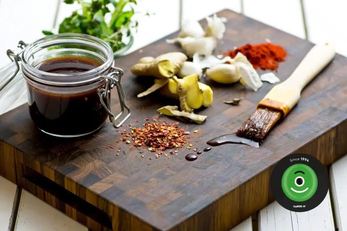 Marinujte maso v sójové omáčce, zázvoru a česneku, poté ho potřete klasickou BBQ směsí. Skvělé pro kuřecí stehna nebo vepřová žebra.