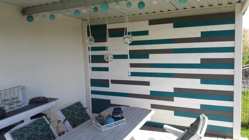 Útulne zariadené okolie záhradky pri záhradnom domčeku s drevom