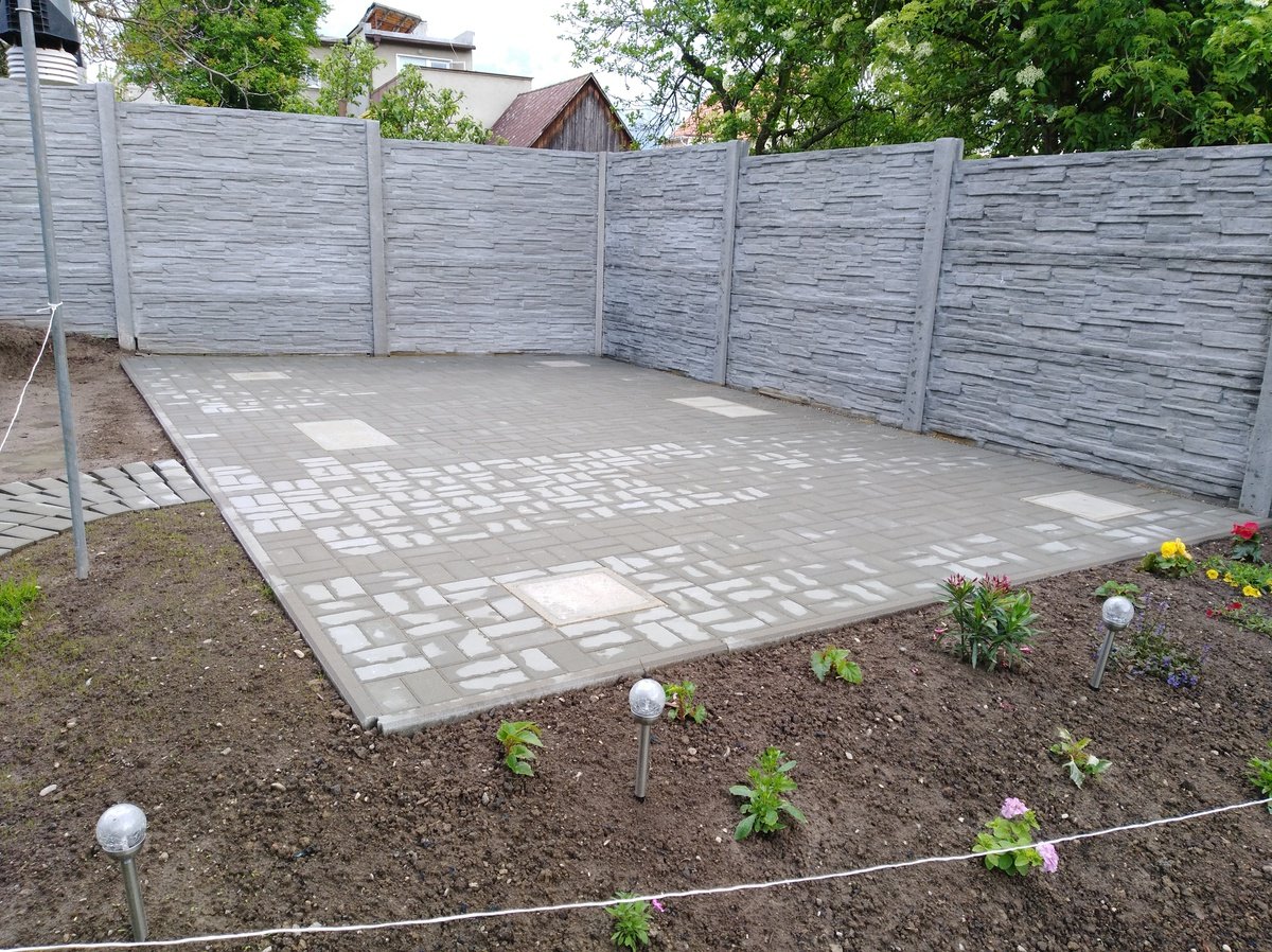 Podklad pod zahradní domek – betonové patky v zámkové dlažbě