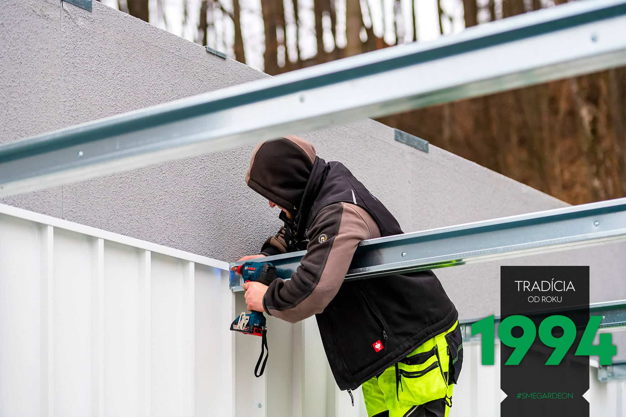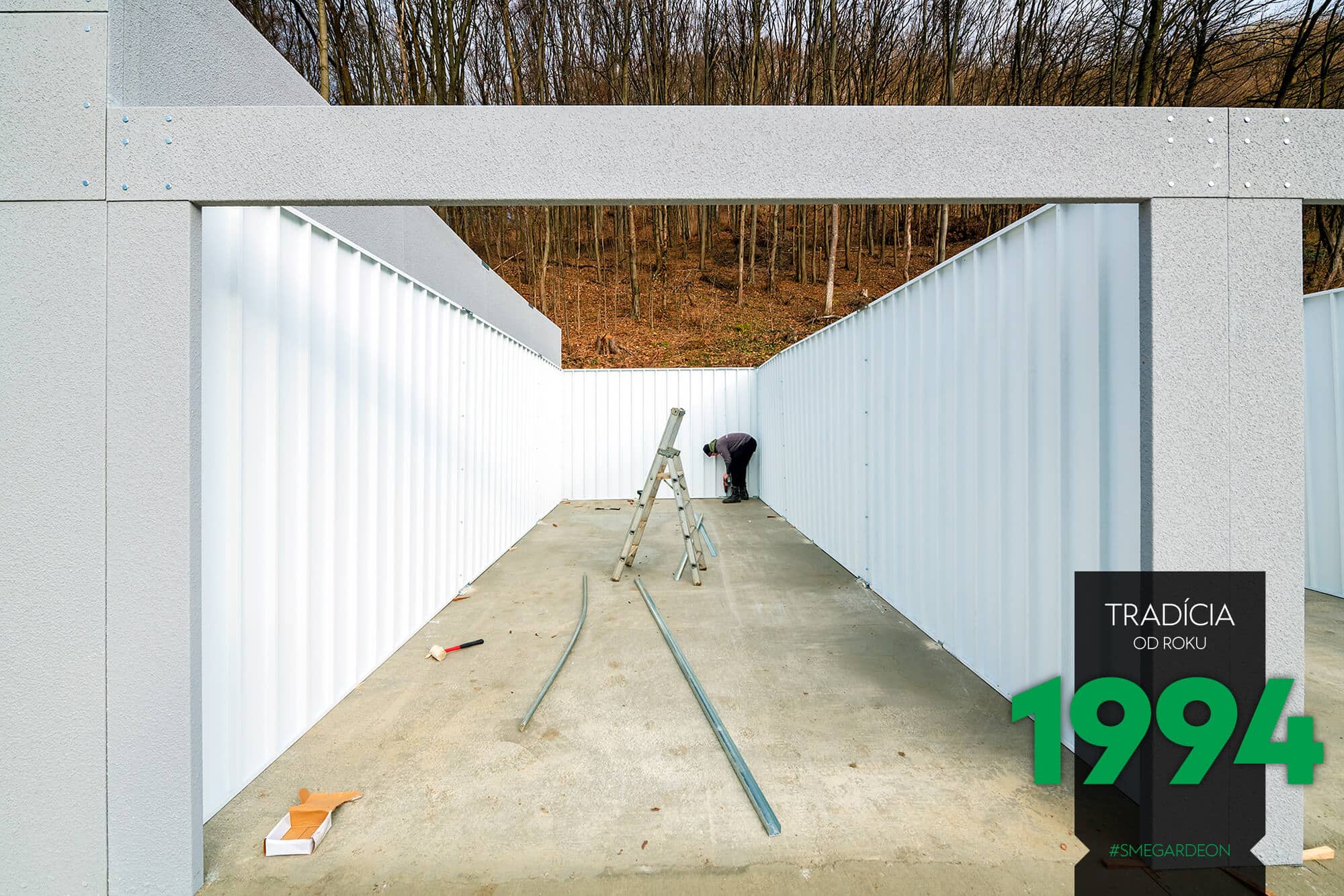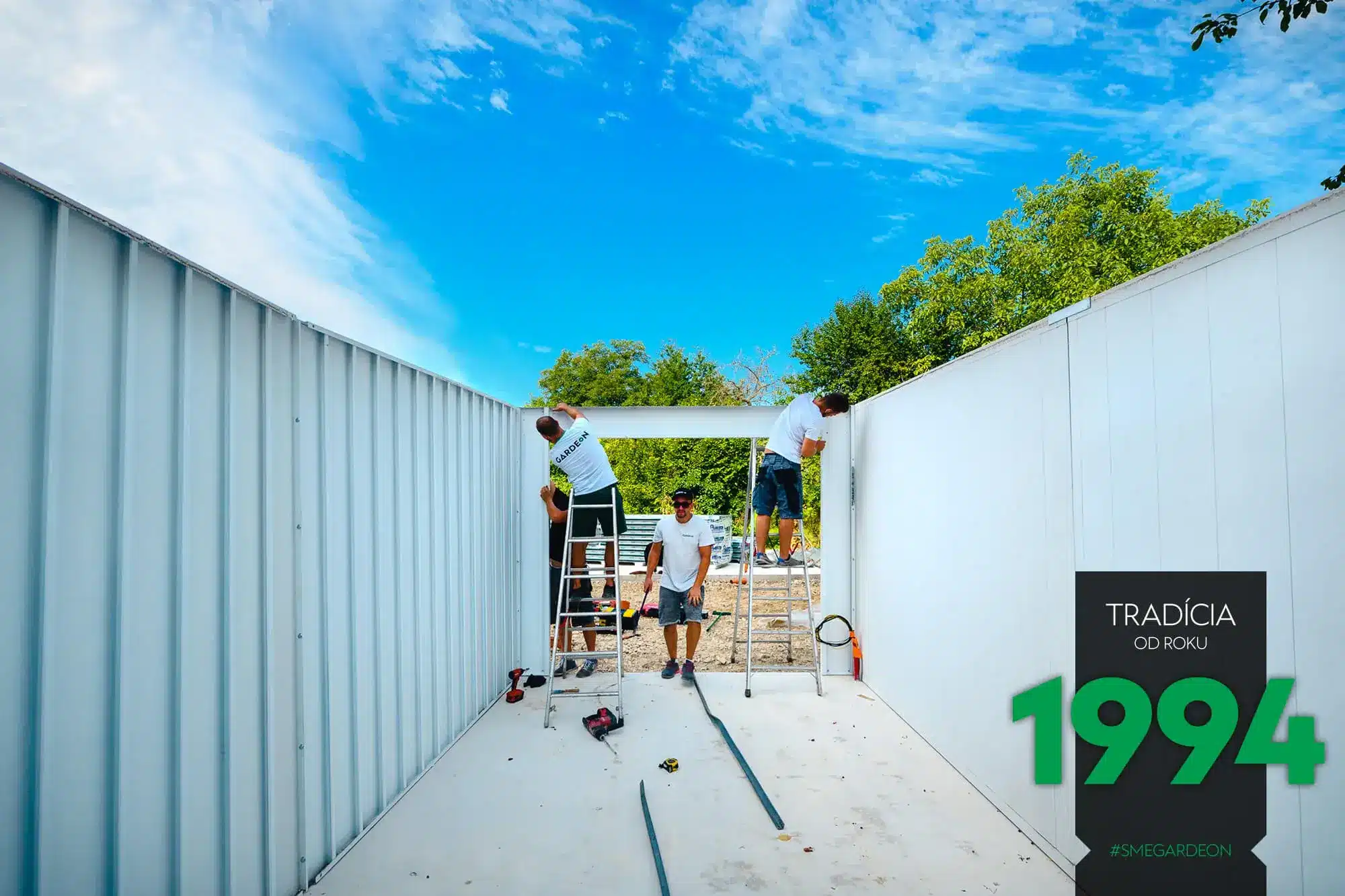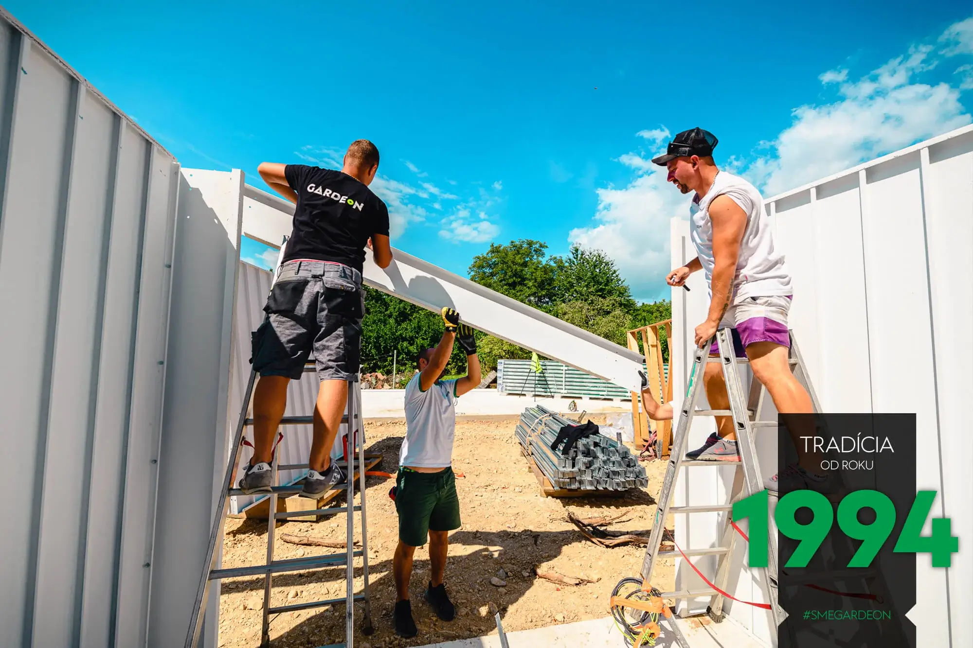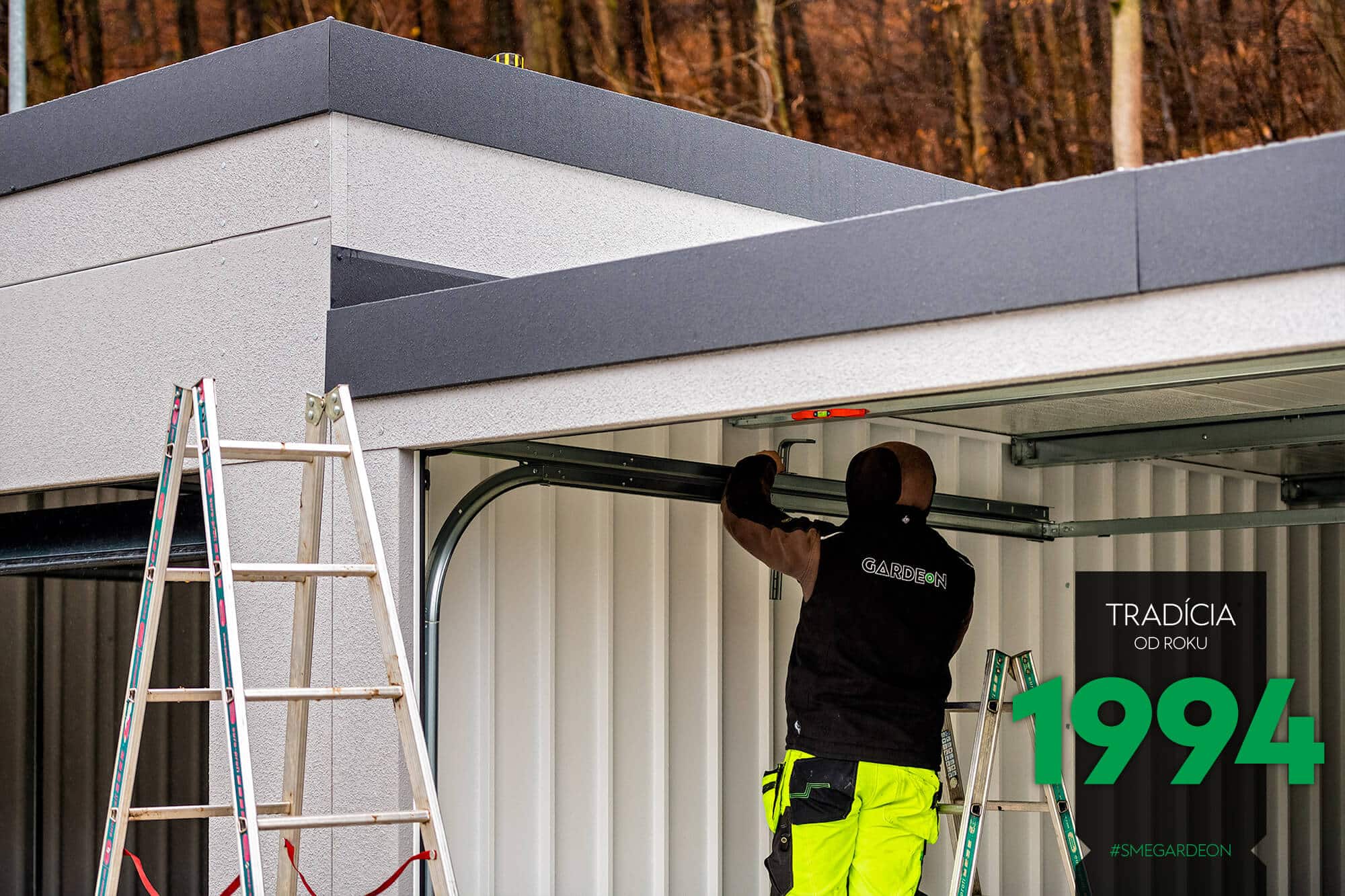 Vnější povrch ocelových stěn je již z výroby upravený odolnou akrylátovou omítkou, díky čemuž jsou montované garáže GARDEON na první pohled k nerozeznání od zděných staveb. Jejich realizace je však na rozdíl od klasického zdění velmi rychlá a čistá.