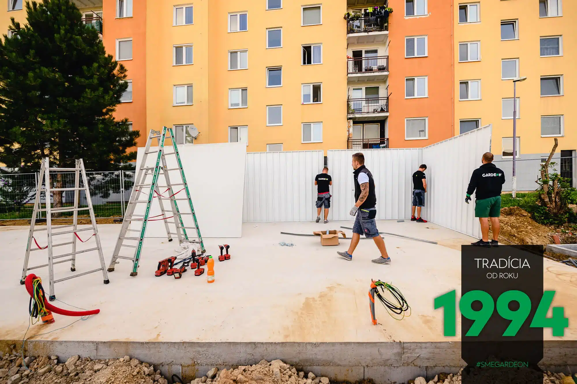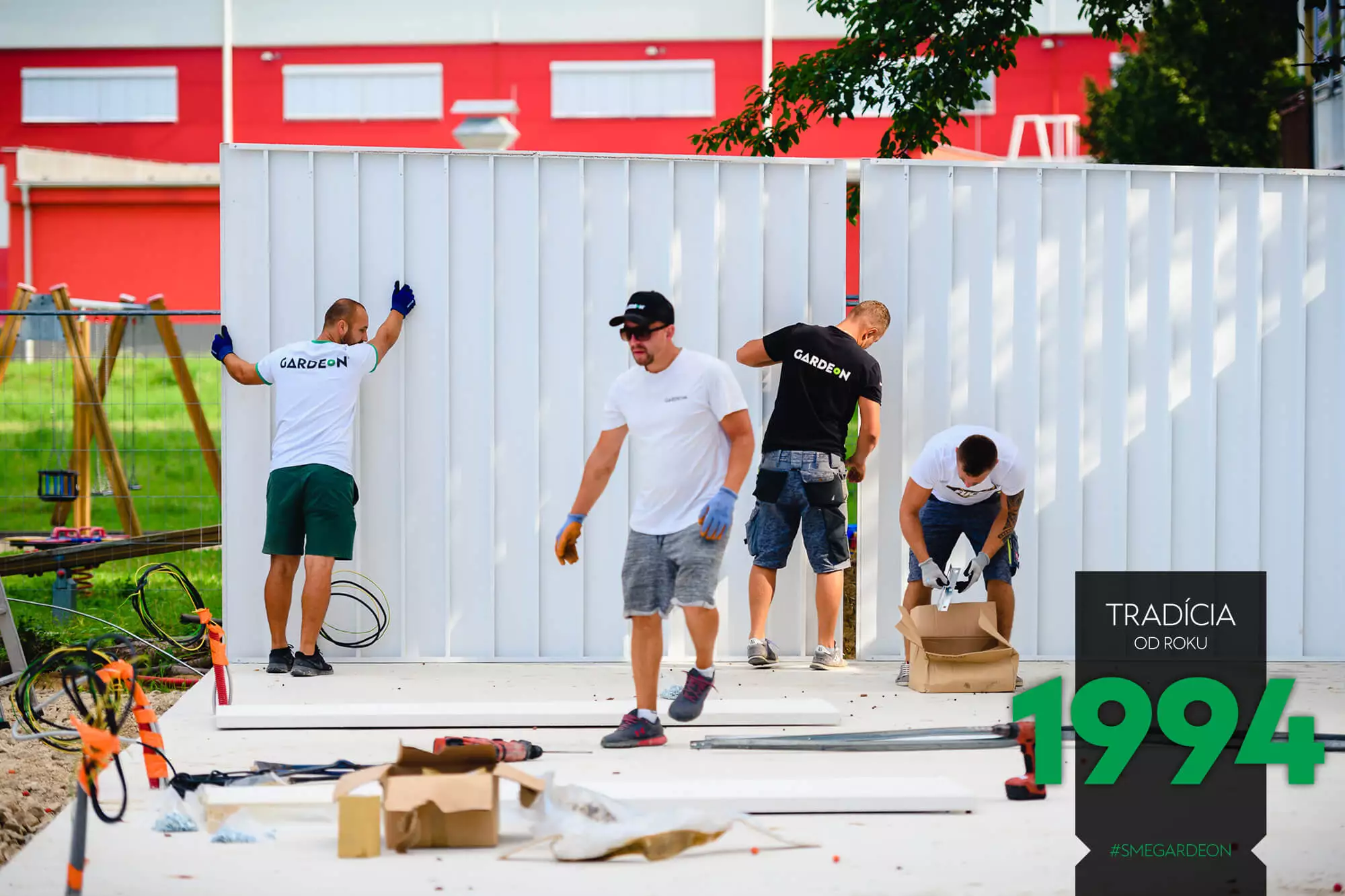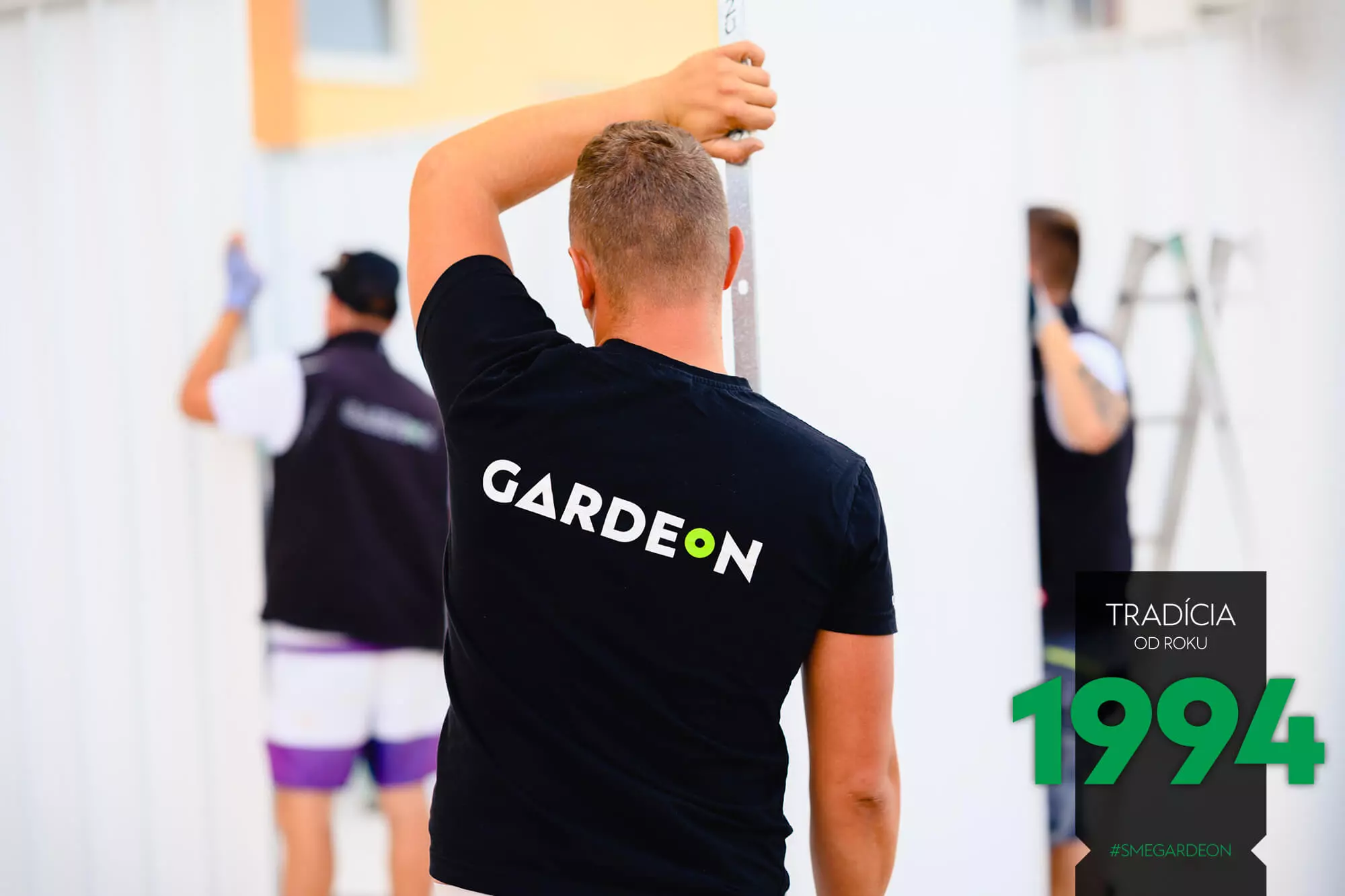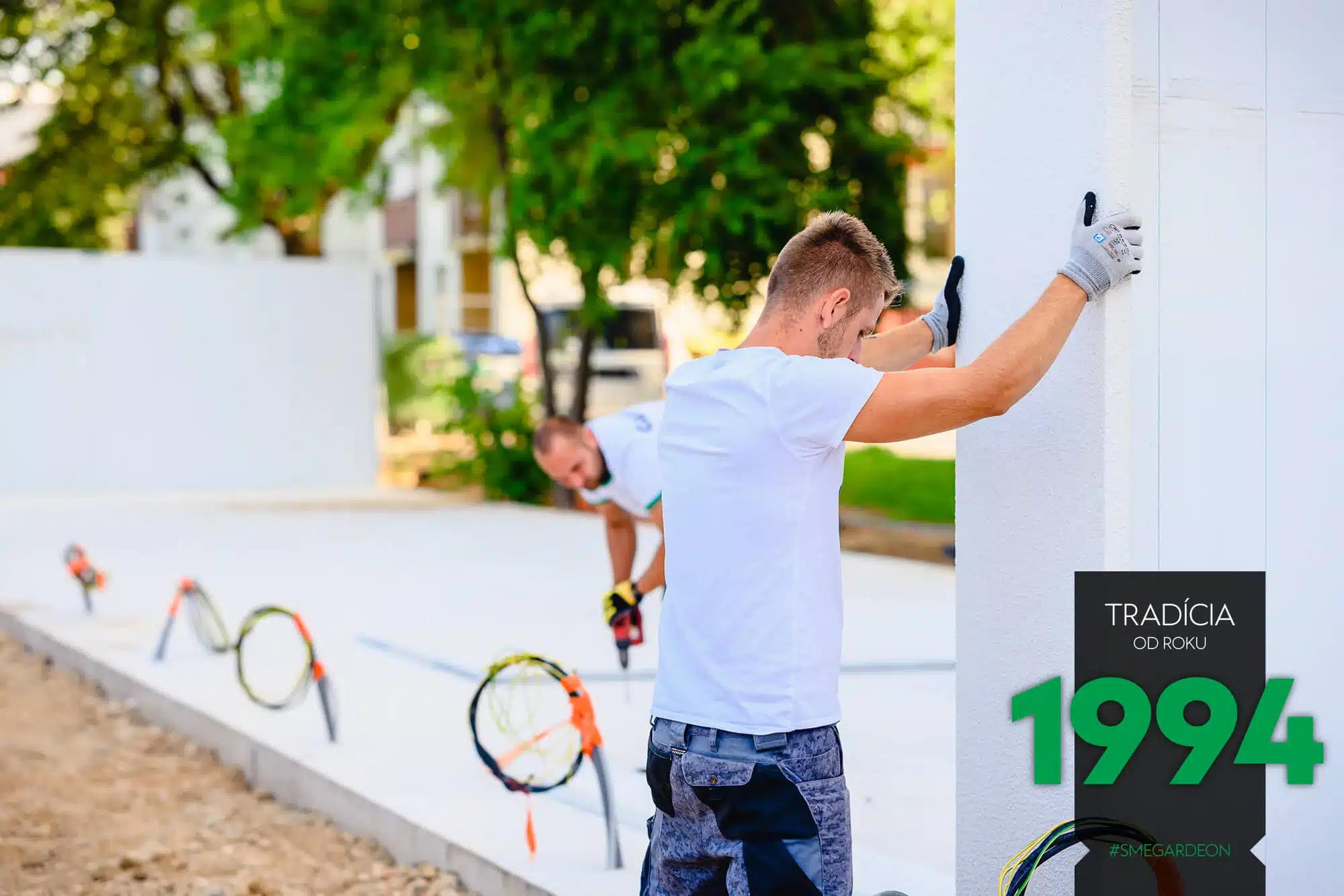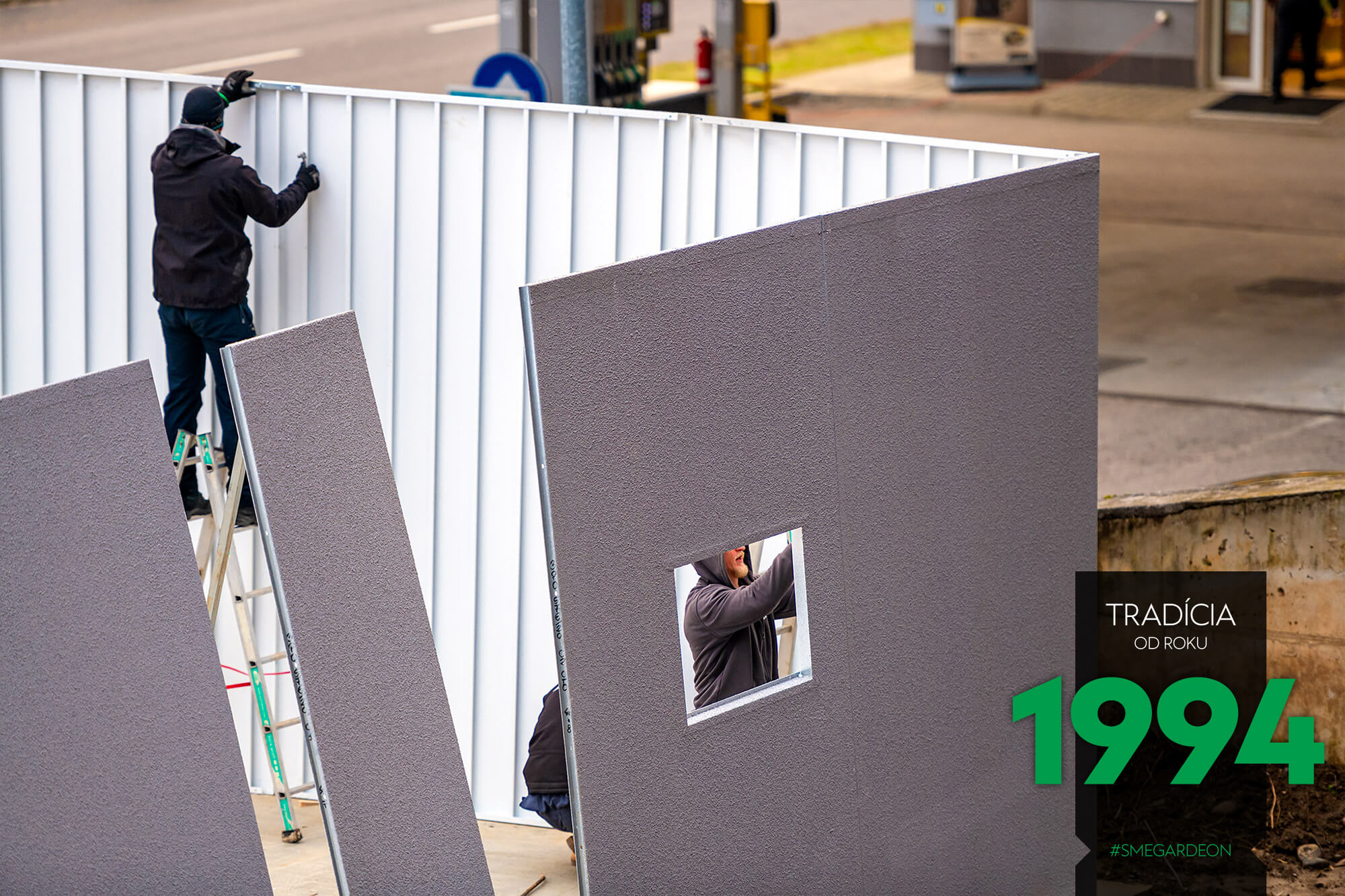 Vnější povrch ocelových stěn je již z výroby upravený odolnou akrylátovou omítkou, díky čemuž jsou montované garáže GARDEON na první pohled k nerozeznání od zděných staveb. Jejich realizace je však na rozdíl od klasického zdění velmi rychlá a čistá.
