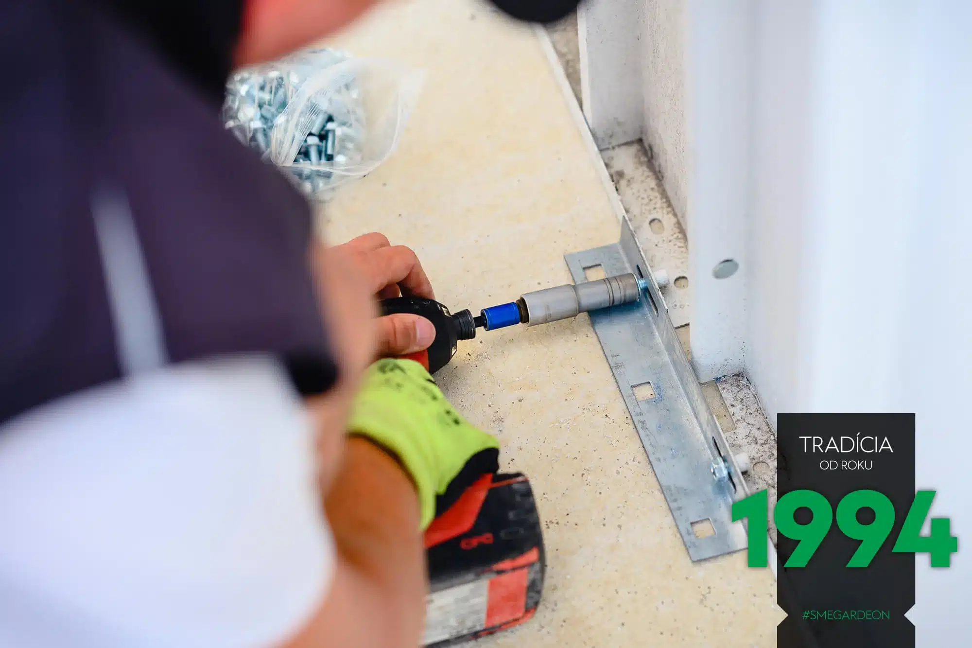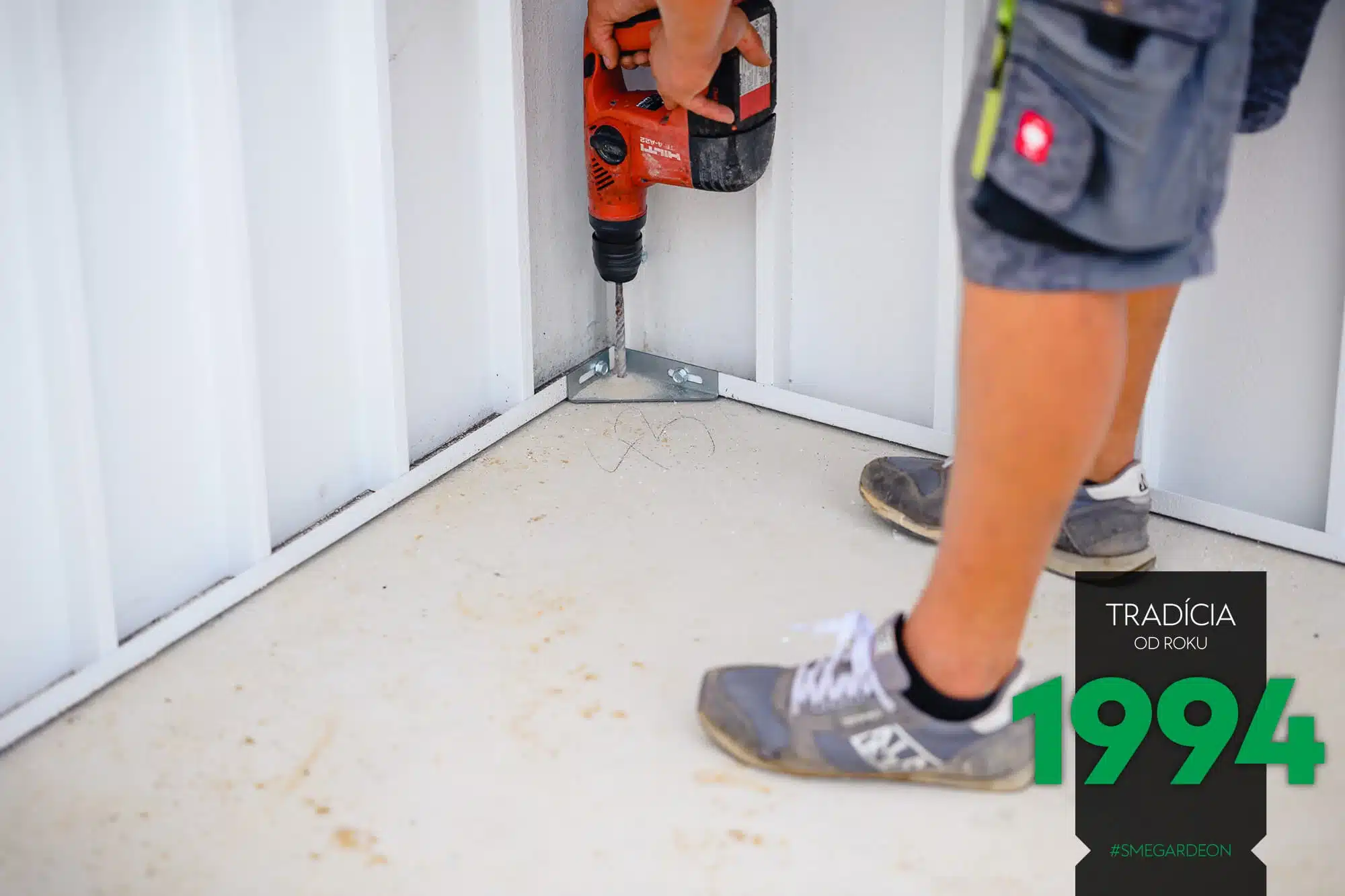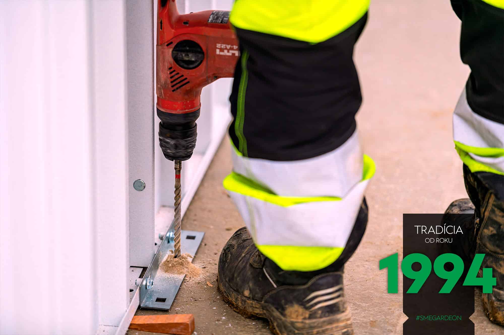 Následuje kontrola přesnosti umístění. Když je vše na správném místě, stěnové panely se ukotví k podkladu. Jelikož pracujeme s profesionálním akumulátorovým nářadím renomované značky HILTI, při práci se obejdeme bez elektrické přípojky.