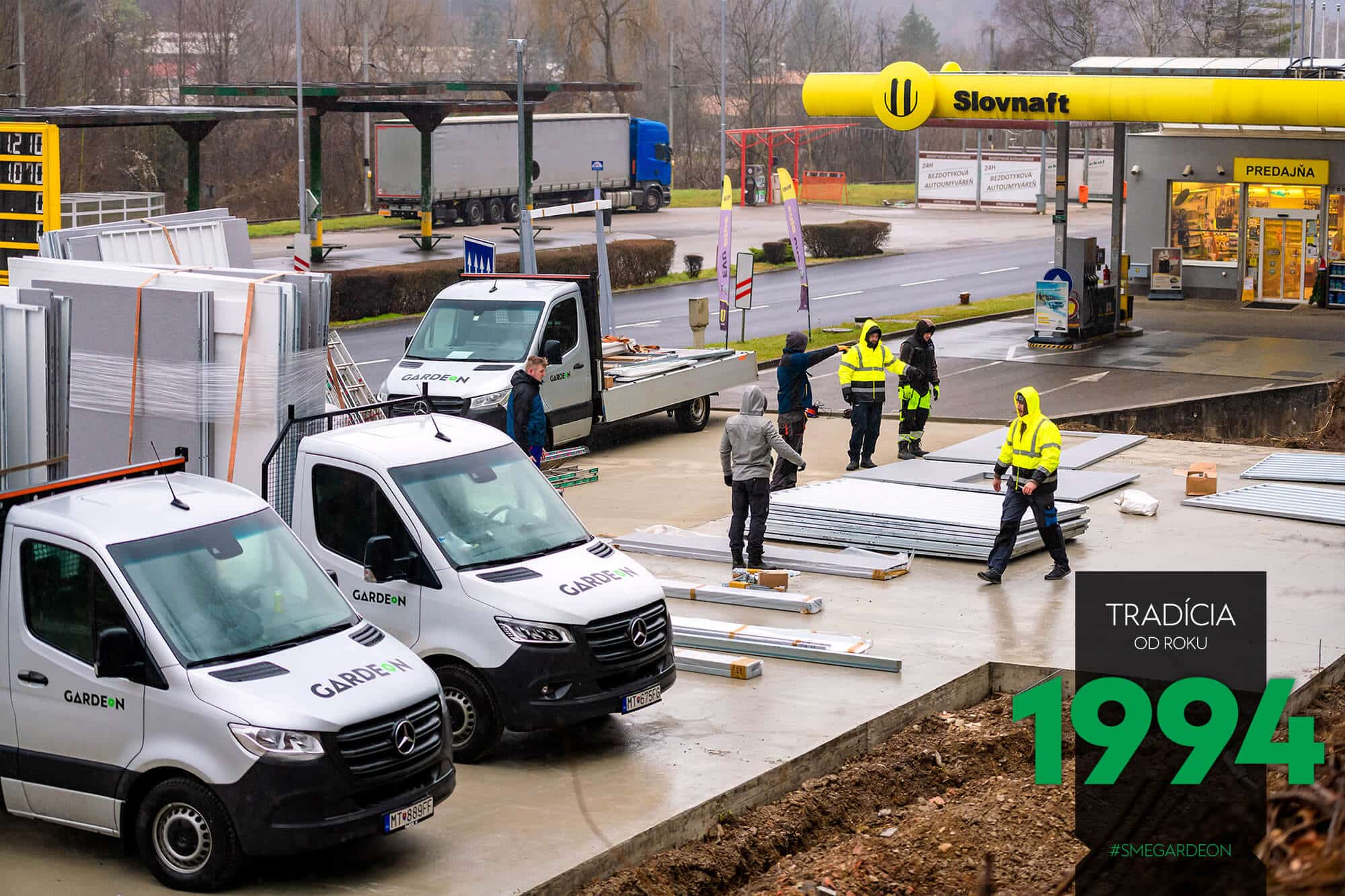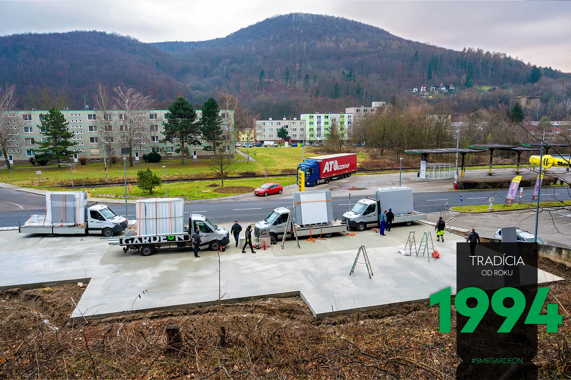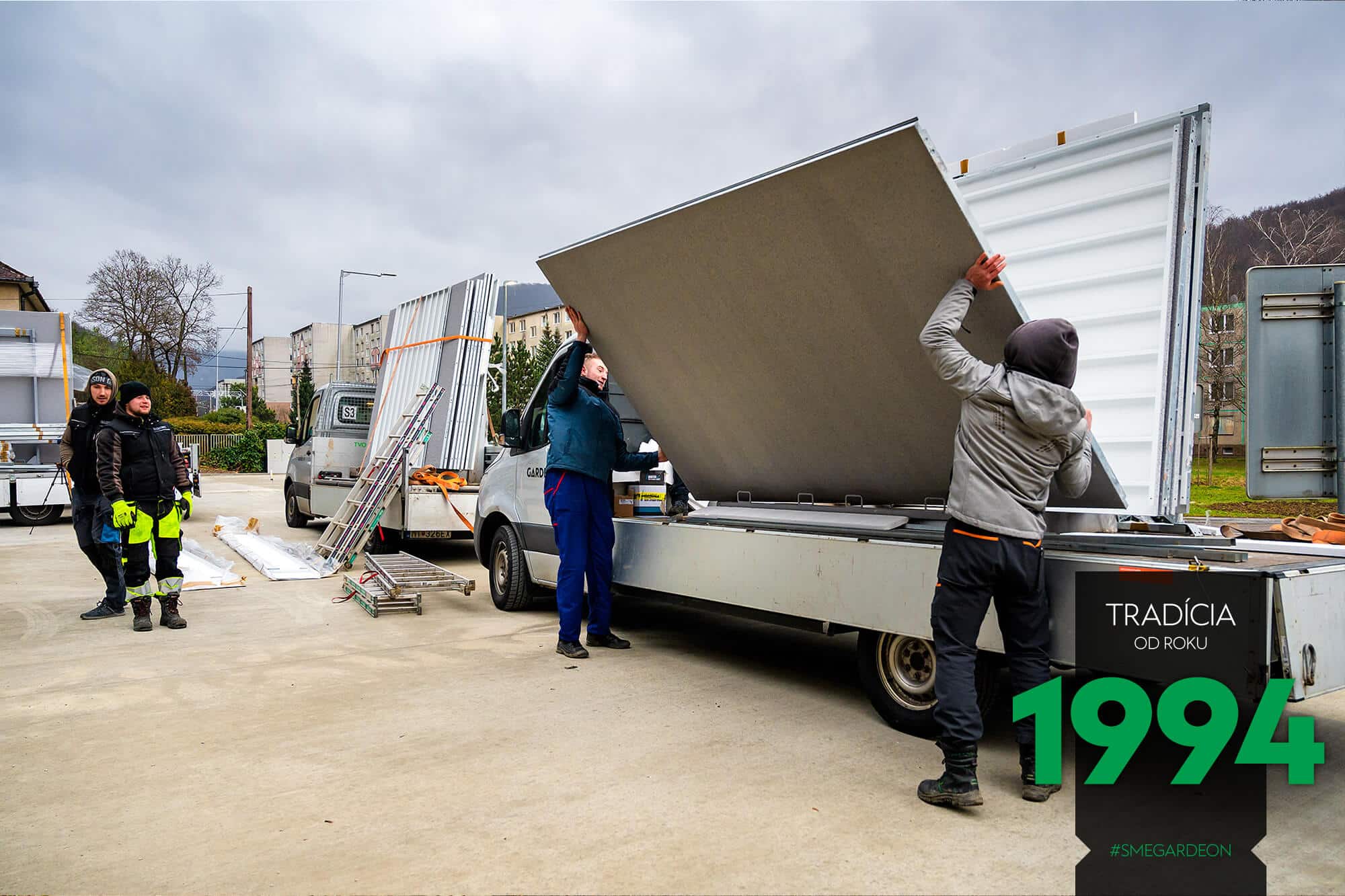 Ve stanoveném termínu přivezeme na určené místo vše potřebné – od konstrukčních dílů přes spojovací materiál až po montážní nářadí. Jelikož vše dovezeme na malých nákladních autech do 3,5 tuny a při montáži nepoužíváme těžkou techniku, ani při výstavbě velkých řadových garáži nepotřebujeme zvláštní plochu a neomezíme dopravu v okolí.