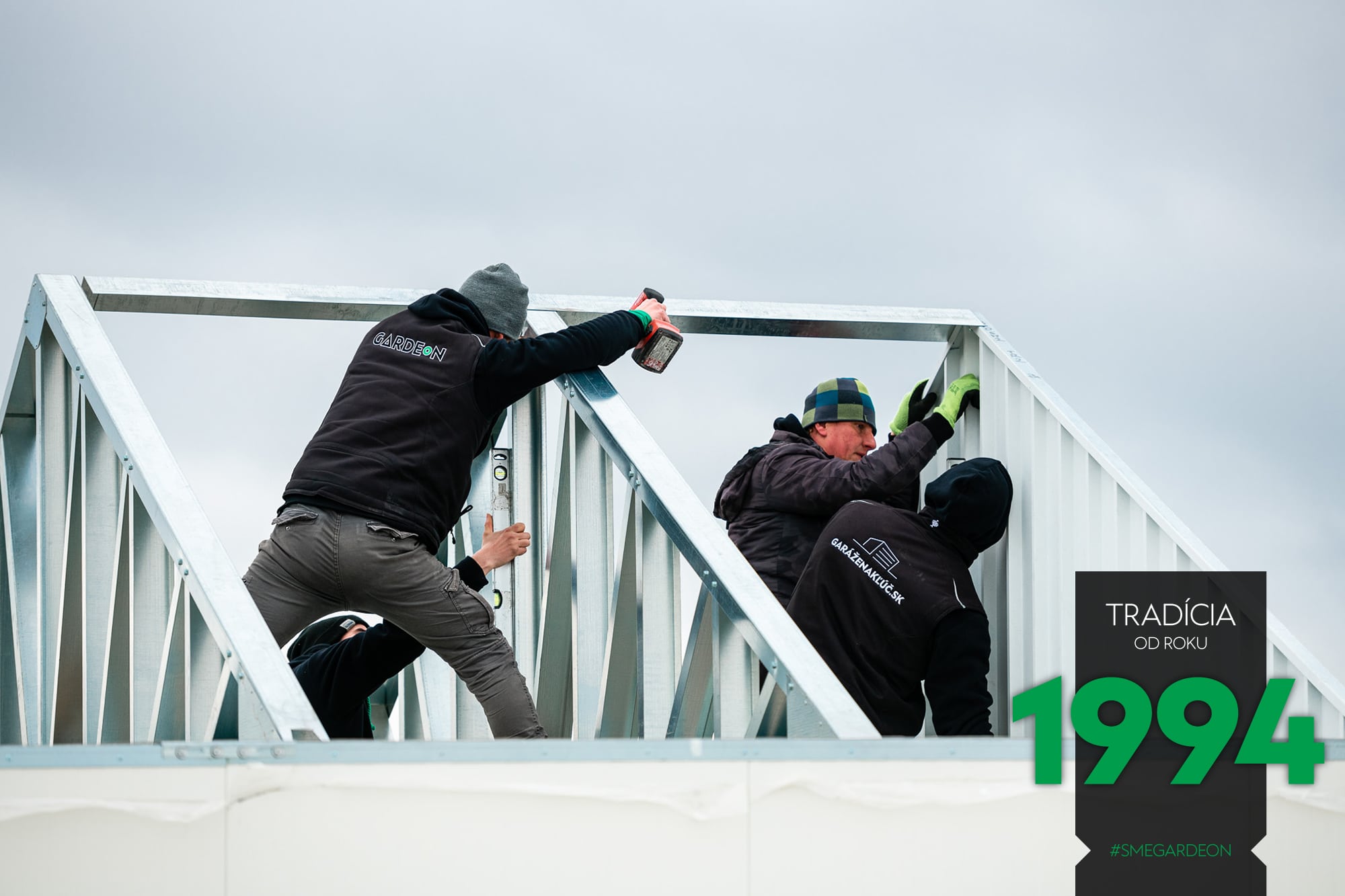 Montážníci upevní v pravidelných rozestupech střešní nosníky k obvodovým stěnám garáže. Střecha je díky tvaru nosníků vyspádovaná vždy souměrně, a to buď standardně – na levou a pravou stranu, nebo atypicky – dopředu a dozadu. Sklon špičaté střechy závisí na velikosti garáže a může být 27 °, 20 ° nebo 16 °.