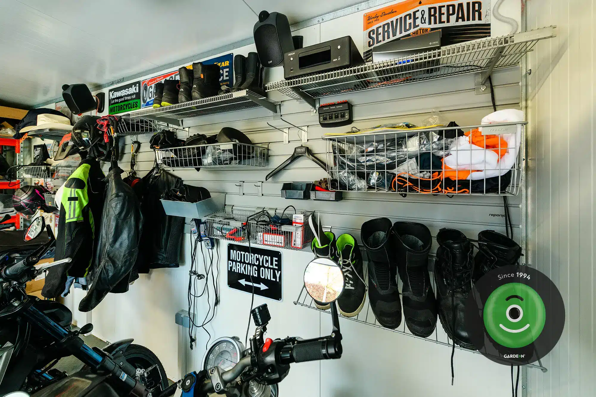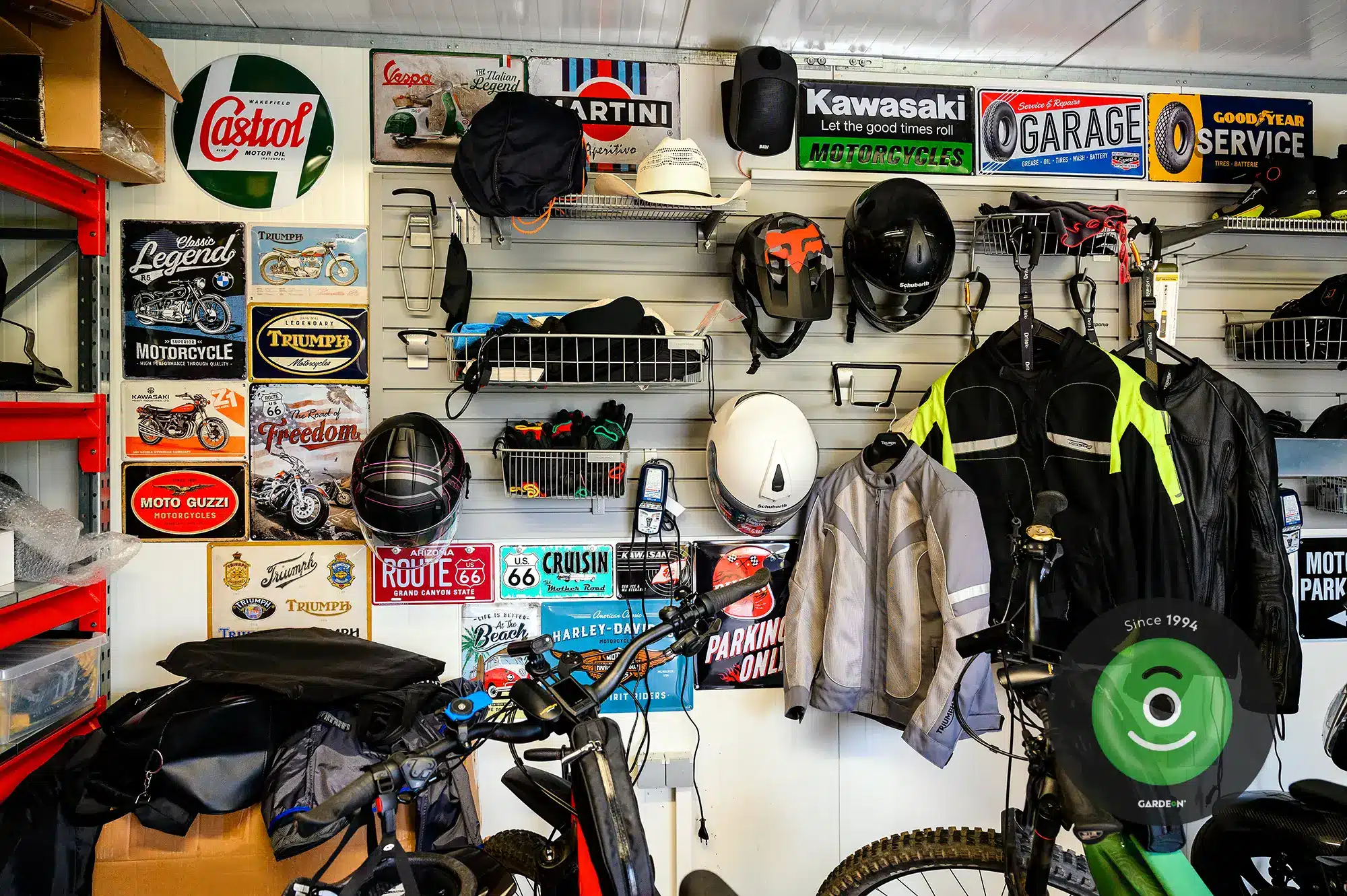 Místo, kde můžete bezpečně odstavit motorku, skútr či kolo, lze vytvořit i v dostatečně prostorné garáži na auto, ale není to jediná praktická možnost. Váš dvoukolový tátoš může mít i vlastní parádní garáž, jejíž součástí bude například i malá dílna nebo místo pro uložení potřebné výbavy, včetně přilby a speciálního oblečení.