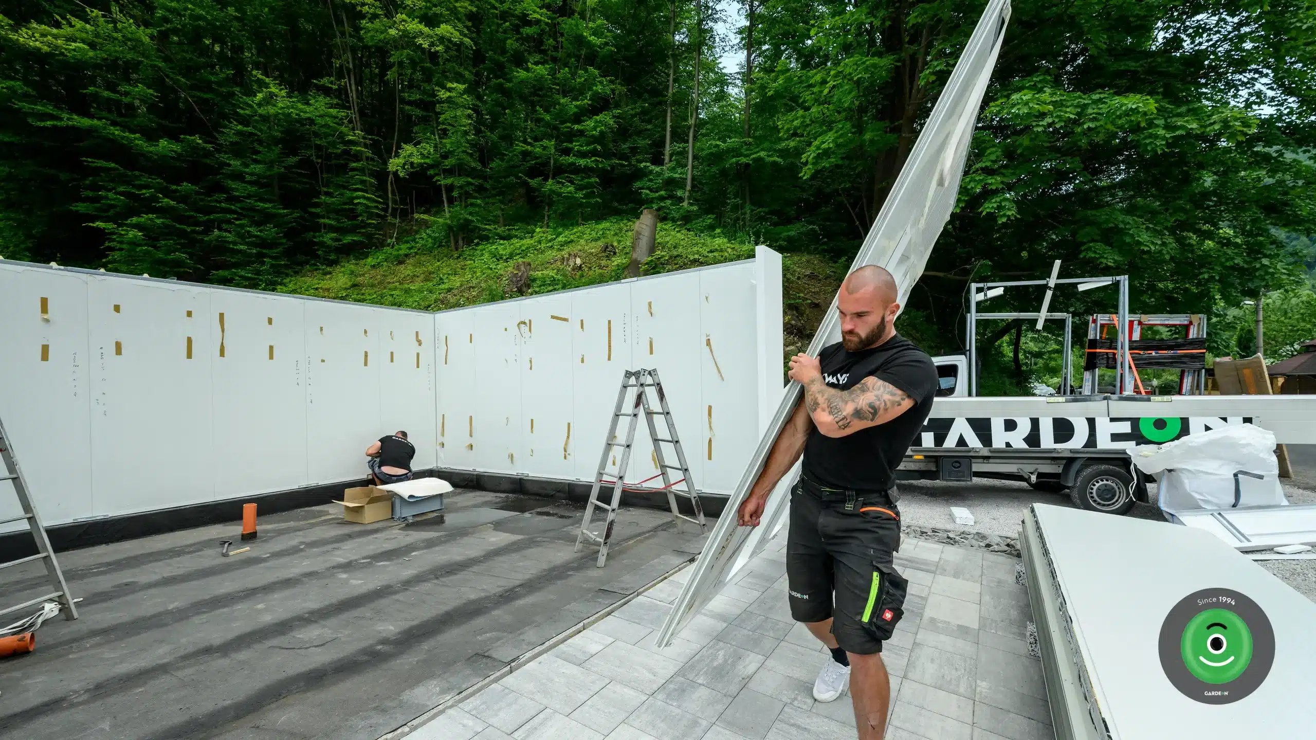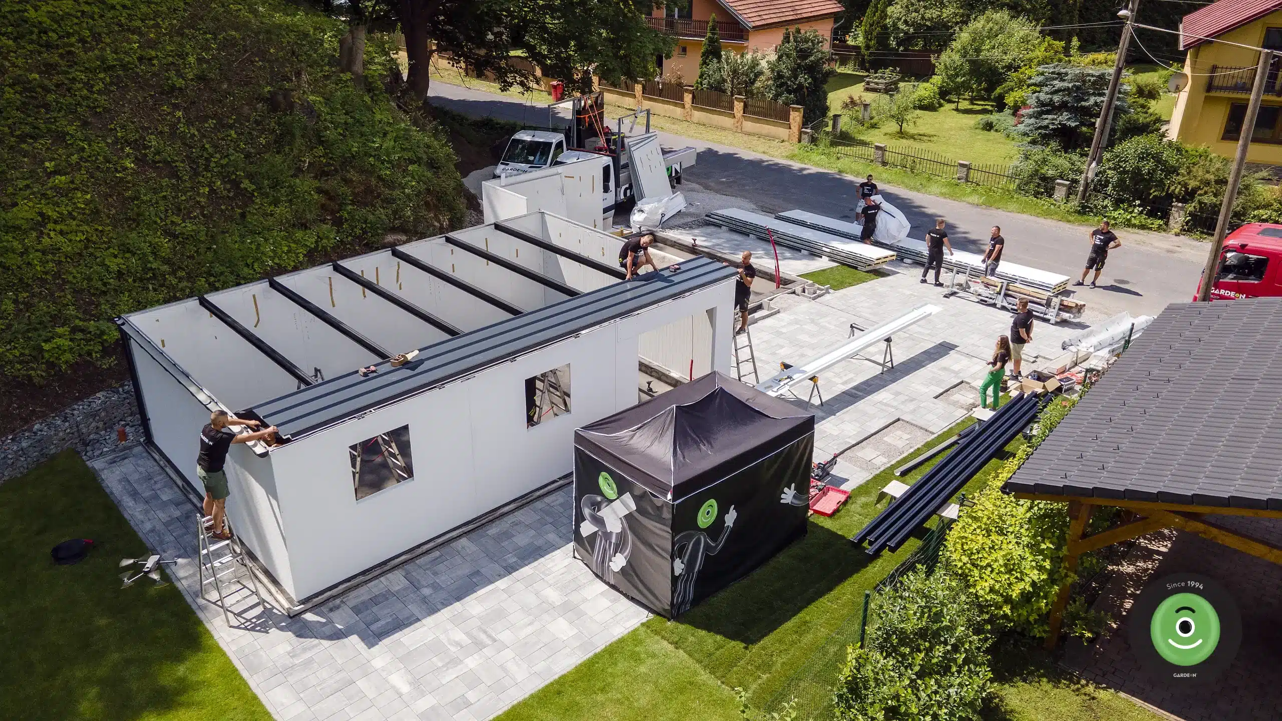 V předem dohodnutém čase mohou naši zákazníci očekávat dodávku GARDEON, která doveze na určené místo vše potřebné – všechny konstrukční díly i profesionální nářadí. Výhodou je, že s našimi praktickými auty se dostaneme téměř kamkoliv. Posádka vozidla se pak postará o vyložení dílců i o jejich montáž.