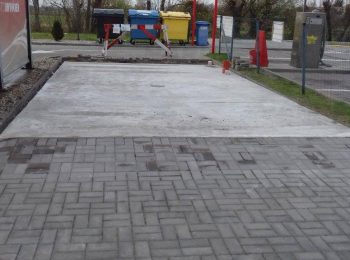 - Rozměry betonové patky (pod / v zámkové dlažbě) jsou min. 40 × 40 × 40 cm