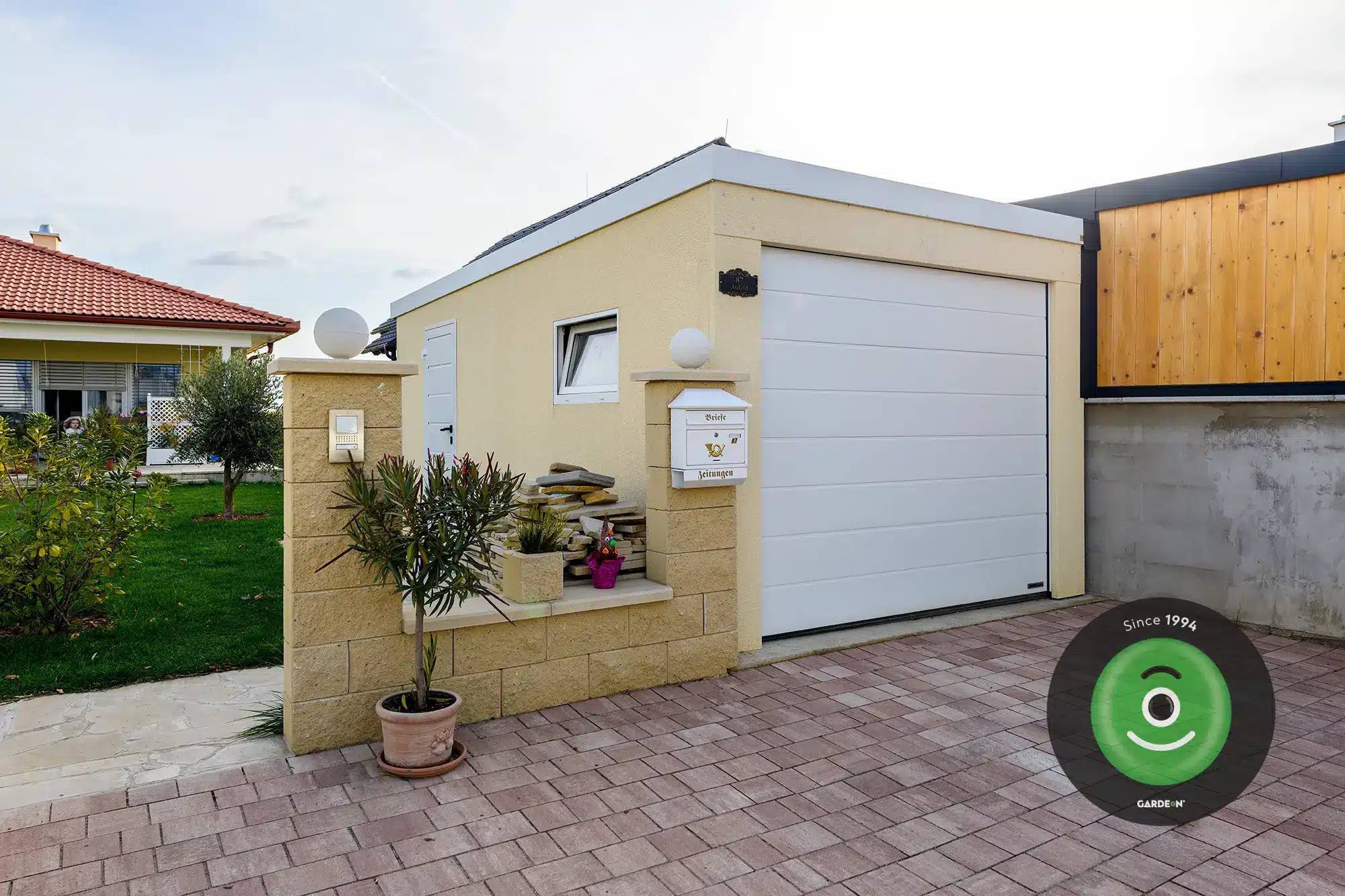 Barvu garáže si vybírejte tak, aby ladila s okolními stavbami. K moderní architektuře se hodí spíše střídmá kombinace barev. Vše však závisí na barvě vašeho domu nebo garáže. V rámci výběru barev omítky a doplňků garáže (okapový systém, dveře, světlík, okno, garážová brána) vám doporučujeme kombinovat např. bílou či světlou omítku s doplňky v antracitové barvě. Písková, béžová či žlutá barva omítky ladí zejména s hnědými doplňky. Tmavší odstíny omítky jako hnědá, cihlová nebo tmavě-šedá je nejvhodnější doplnit bílými doplňky.