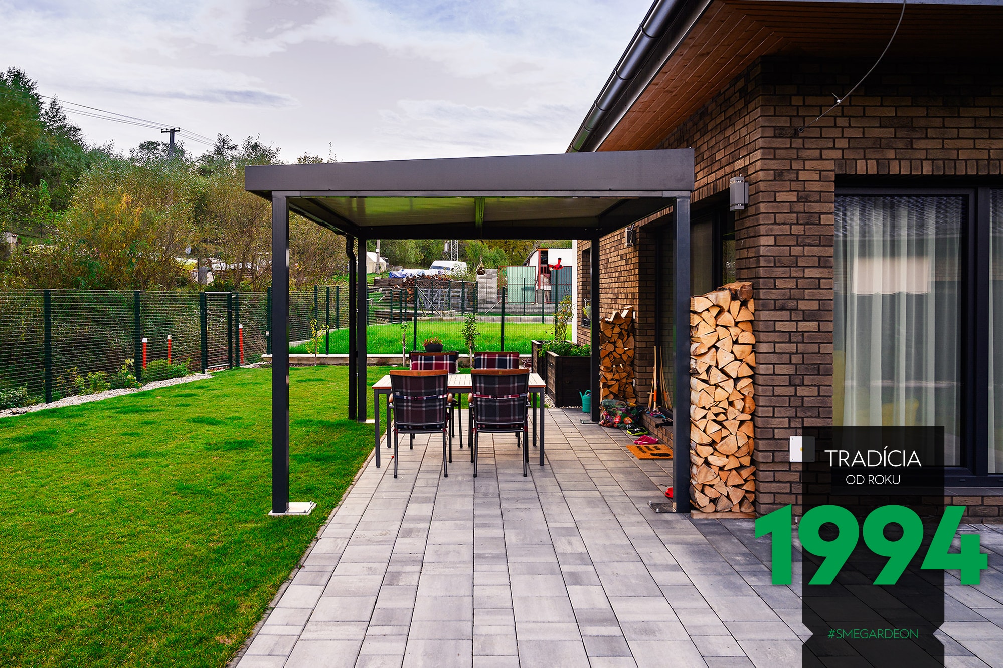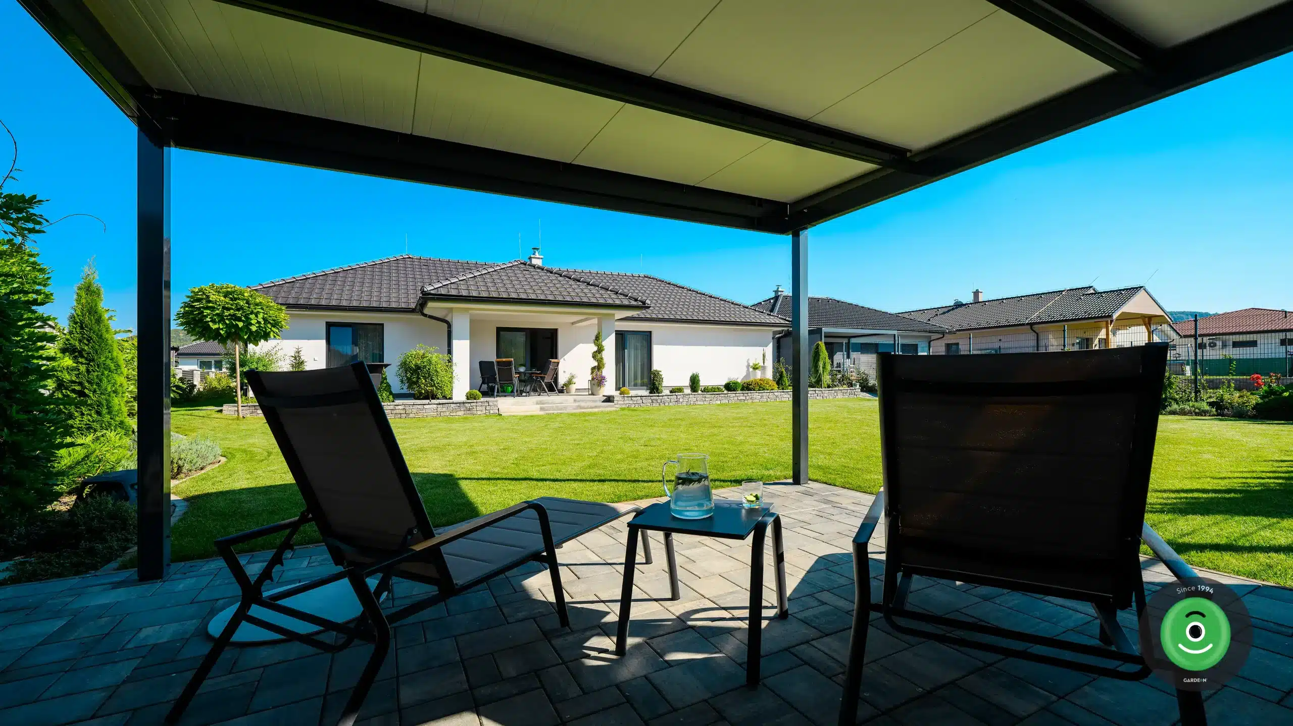 Možnosti praktického využití rozšiřují pro prémiové pergoly GARDEON i různé varianty zastřešení. Vedle ploché střechy s permanentní ocelovou konstrukcí a krytinou z trapézového plechu je za příplatek dostupná také zateplená střecha Gardeon Thermopanel.