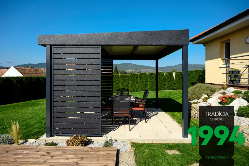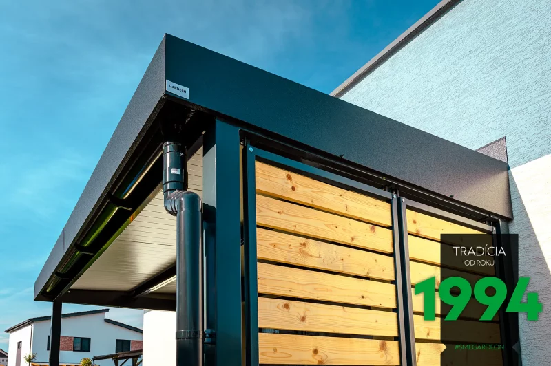 Pergoly GARDEON lze doplnit i o designové výplně, umístěny dle vašeho přání – tak, aby pod zastřešením vytvořili například místo chráněné před větrem nebo před pohledy od sousedů. Výplně tvoří dřevěné laťování, které může být ošetřeno bezbarvým olejem nebo nátěrem v odstínu červeného smrku či v antracitové barvě.