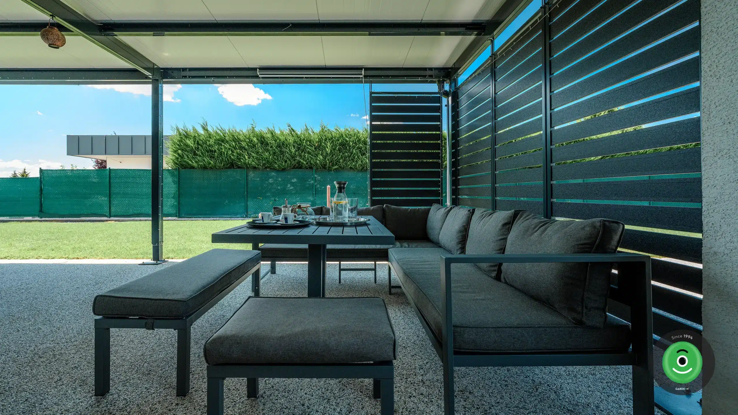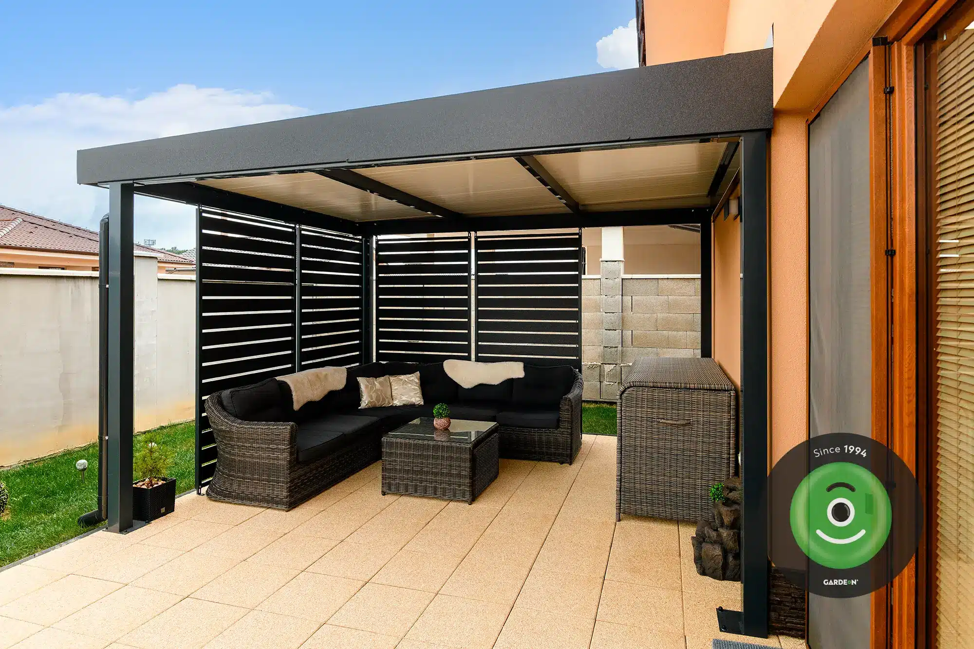 Pergoly INDIVIDUAL umíme dle vašeho individuálního přání doplnit i o designové výplně, které pomohou vytvořit příjemné místo chráněné před větrem nebo nevítanými pohledy.