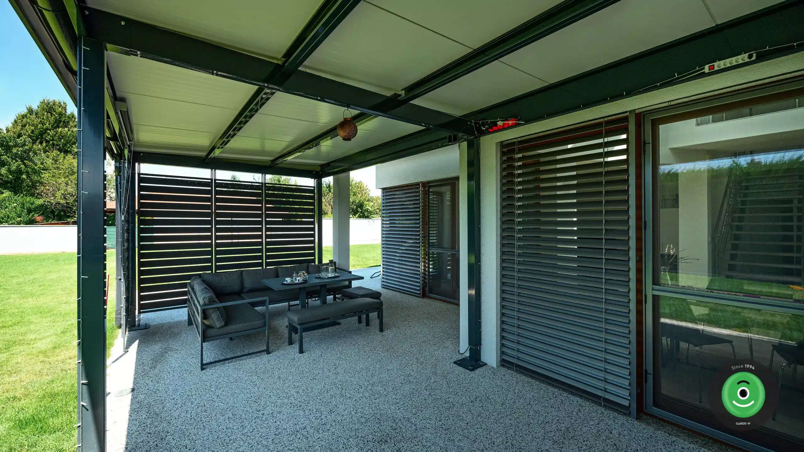 Základem všech našich pergol je jednoduchá a odolná konstrukce: na sloupech ze žárově pozinkované oceli o rozměrech 100 × 100 mm je osazena plochá střecha elegantně ukončena atikou. Pergoly INDIVIDUAL přitom poskytují velkou variabilitu pokud jde o rozměry i o barevnost – velikost přestřešení přizpůsobíme na míru vašim požadavkům, stejně jako barevný odstín konstrukce, který si můžete zvolit tak, aby pergola ladila s domem či dalšími zahradními prvky.