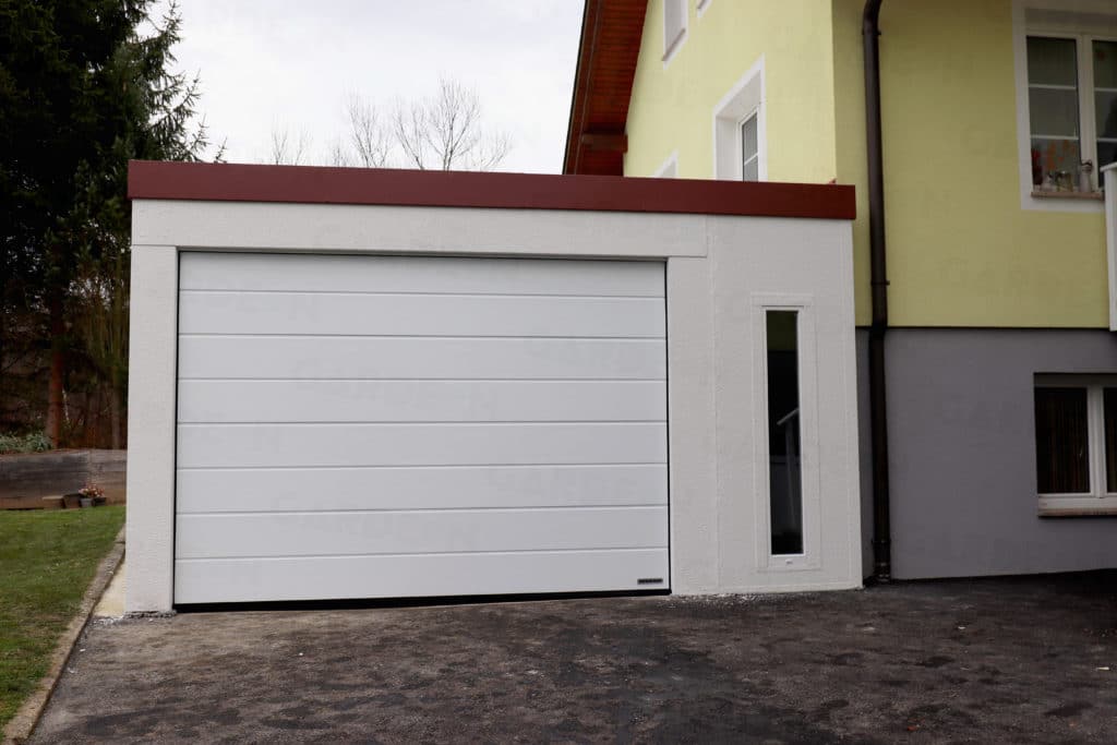 Garaże modułowe wyglądają jak murowane. Z tym że są o wiele piękniejsze. Ręczne szpachlowanie może zakończyć się wybrzuszeniami i nierównościami na ścianach. Ściany garażu modułowego są równomiernie natryskiwane specjalnym szwajcarskim tynkiem KABE Permuro. Paleta kolorów tynku jest naprawdę szeroka. Proszę spróbować ułożyć design swojego nowego garażu w naszym konfiguratorze online.