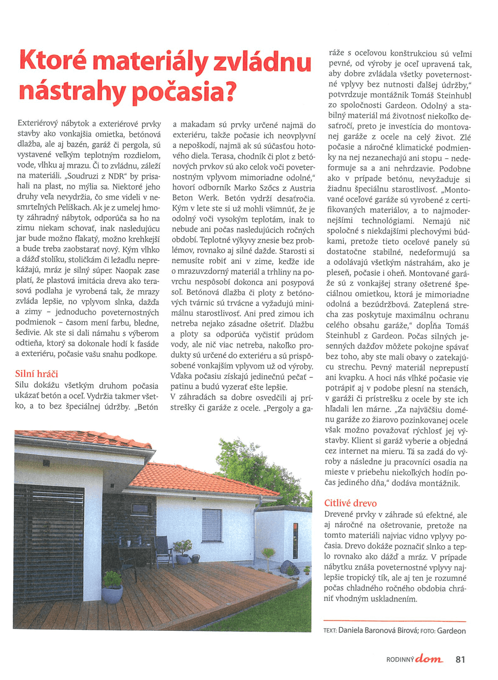 Artykuł z 2 listopada 2020 roku w czasopiśmie Rodinný Dom.