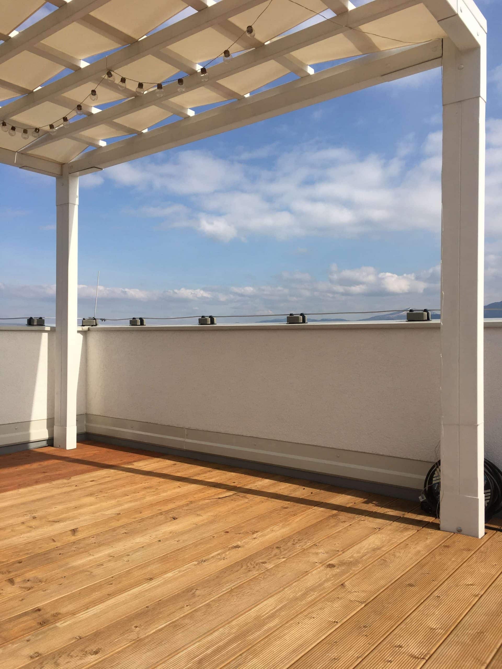 Bardzo efektownym elementem naszych drewnianych pergol i wiat jest przewiewny dach, stworzony z eleganckiego rusztu i lekkich pasów tkaniny. Latem świetnie ochroni Państwa przed palącym słońcem, a niewielką wadą jest jedynie to, że podczas deszczu można lekko zmoknąć.