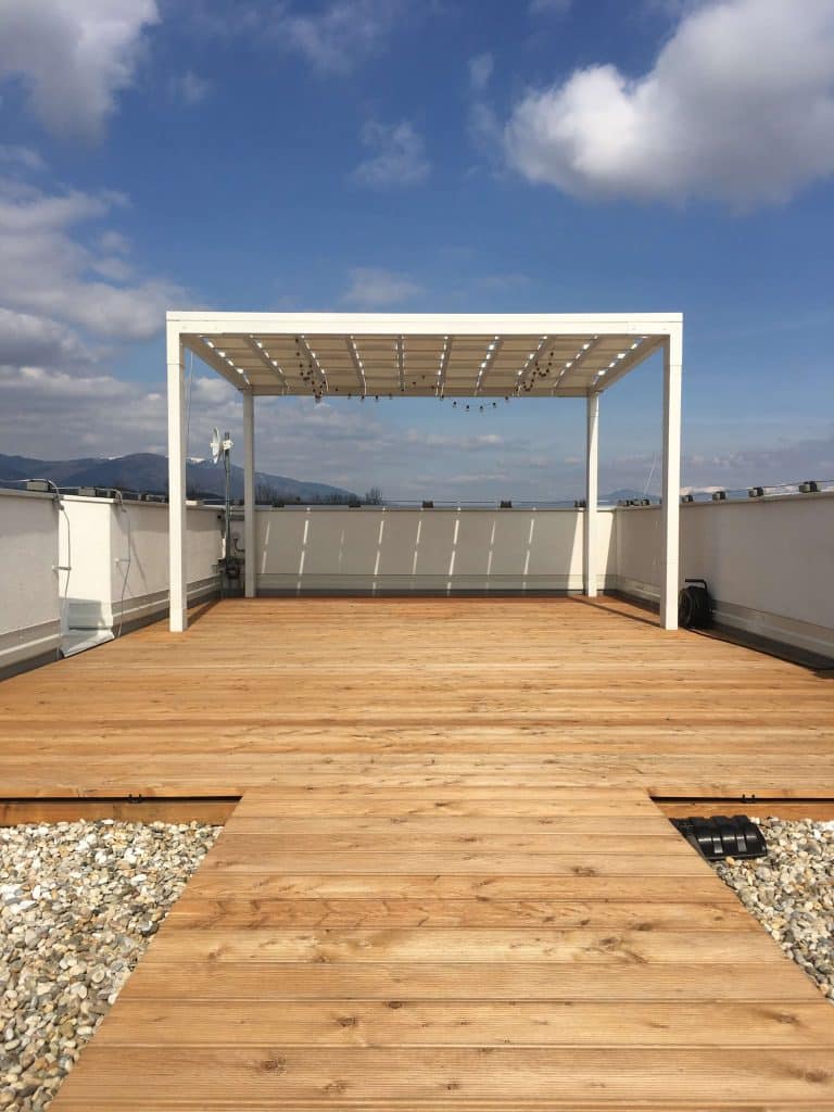 Jesienią lepiej jest zdemontować dach i wraz z meblami ogrodowymi przechowywać go w chronionym, suchym miejscu, aby wytrzymał do kolejnego sezonu. Po zimie można go ponownie zainstalować i znów cieszyć się pięknymi dniami pod pergolą w ogrodzie lub na tarasie.