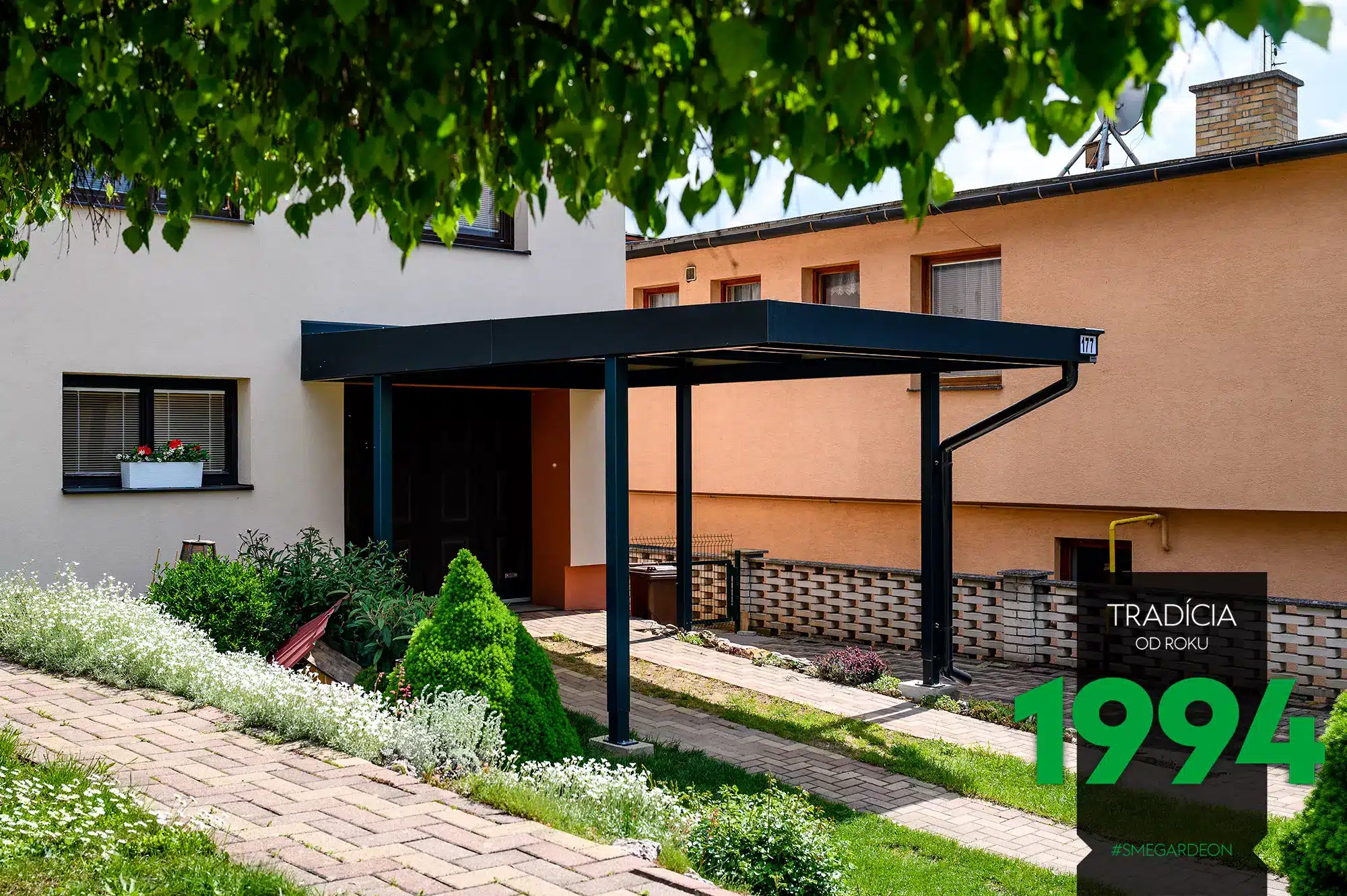 V naší nabídce najdete přístřešky – GARDEON. Mají montovanou konstrukci z kvalitní oceli, které dává speciální povrchová úprava vysokou odolnost, dlouhou životnost a bezúdržbovost. Žádný z našich přístřešků si tedy nevyžaduje ani po letech další nátěr či speciální péči. Z konstrukčního systému vyplýva i další výhoda našich přístřešků, a tou je variabilita – umožňují zrealizovat širokou škálu praktických a originálních zahradních staveb s působivým moderním designem, které si na základě naší přehledné nabídky komponentů můžete sami navrhnout přesně na míru vašim potřebám.