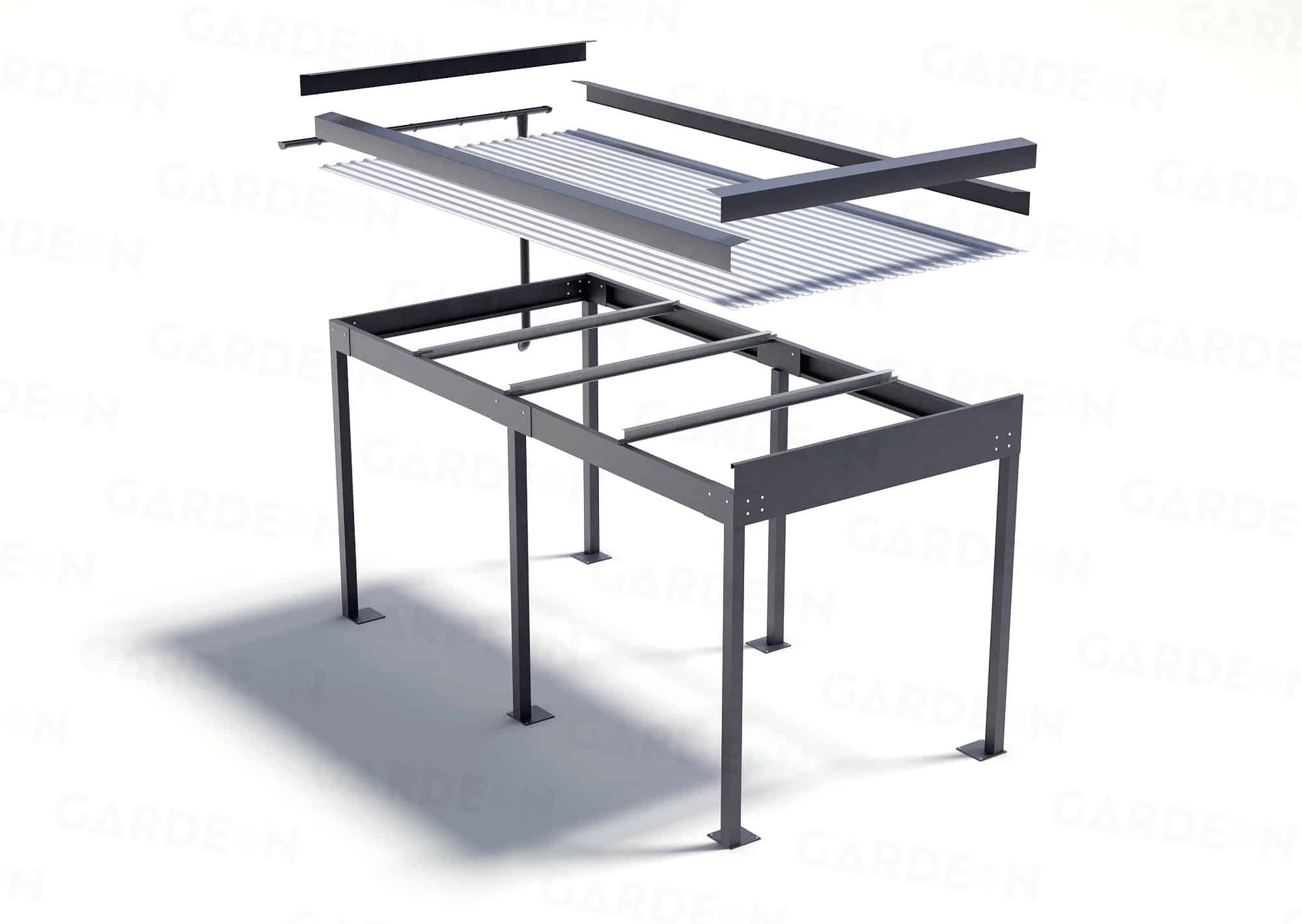 V naší nabídce najdete přístřešky – GARDEON. Jejich základem je montovaná konstrukce z kvalitní oceli, které dodává extrémně dlouhou životnost speciální pozinkování (žárové). Taková povrchová úprava vydrží až 5x déle než je běžné. Zcela pozinkovaná konstrukce se ještě ve výrobě barevně upravuje. Tím se zajistí vysoká odolnost povrchové vrstvy a přístřešky si tak nevyžadují žádný další nátěr.