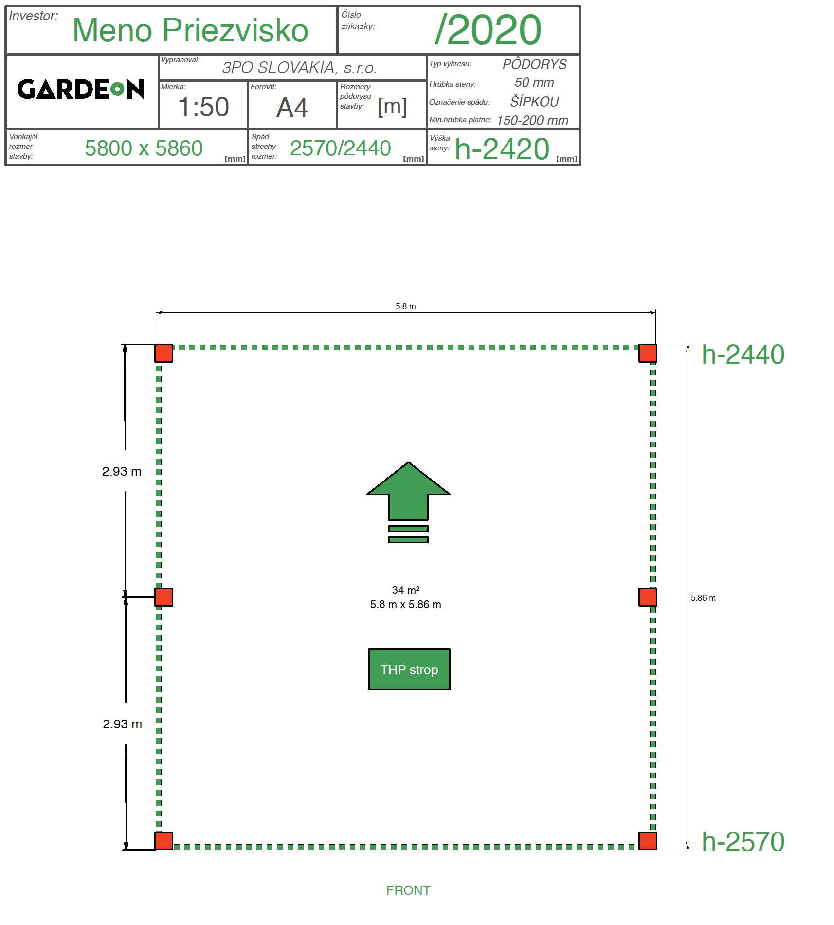 Přístřešky GARDEON mohou mít šířku od 2500 mm až do 5800 mm a hloubku od 5200 do 8740 mm.