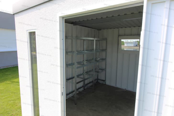 Do hotového zahradního domku si můžete nainstalovat závěsný systém nebo regály s policemi, které vám pomohou uložené věci zorganizovat a udržet v domku pořádek.
