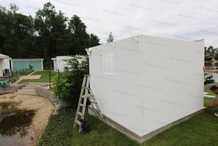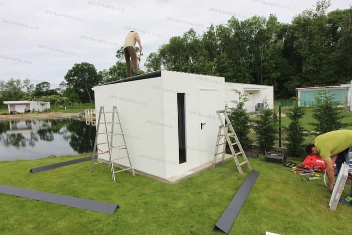 Všechny montážní prvky a díly k vám přivezeme na malém nákladním autě do 3,5 tuny, takže se dostaneme téměř všude. Ani na jejich vyložení a smontování není nutná těžká technika, takže nemusíte mít obavy ani ze stavby na hůře přístupných pozemcích. Postačí parta našich vyškolených pracovníků. Vše je předem připravené a celá konstrukce je do detailu promyšlená, samotná stavba zahradního domku je proto jednoduchá, rychlá a čistá – běžný domek může u vás na zahradě stát již za 3 hodiny.