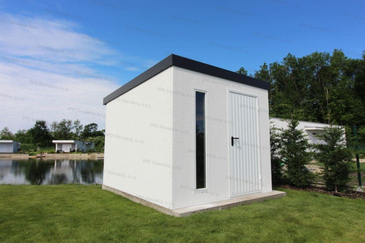 Naše zahradní domky se na místě sestavují z hotových ocelových panelů, jejichž povrch je již z vnější strany upraven kvalitní omítkou renomované švýcarské značky KABE. Jelikož jde o montovanou ocelovou konstrukci, nejsou při realizaci zapotřebí žádné mokré procesy, a protože komponenty dodáváme již s kvalitní povrchovou úpravou, odpadá také zdlouhavé omítání či natírání. Omítka přitom zabezpečuje odolnost stěn proti vlhkosti, UV záření a všem povětrnostním vlivům, domek si tak ani po letech nevyžaduje žádnou údržbu. Takovou výhodu nenabízejí ani plastové ani dřevěné zahradní stavby.