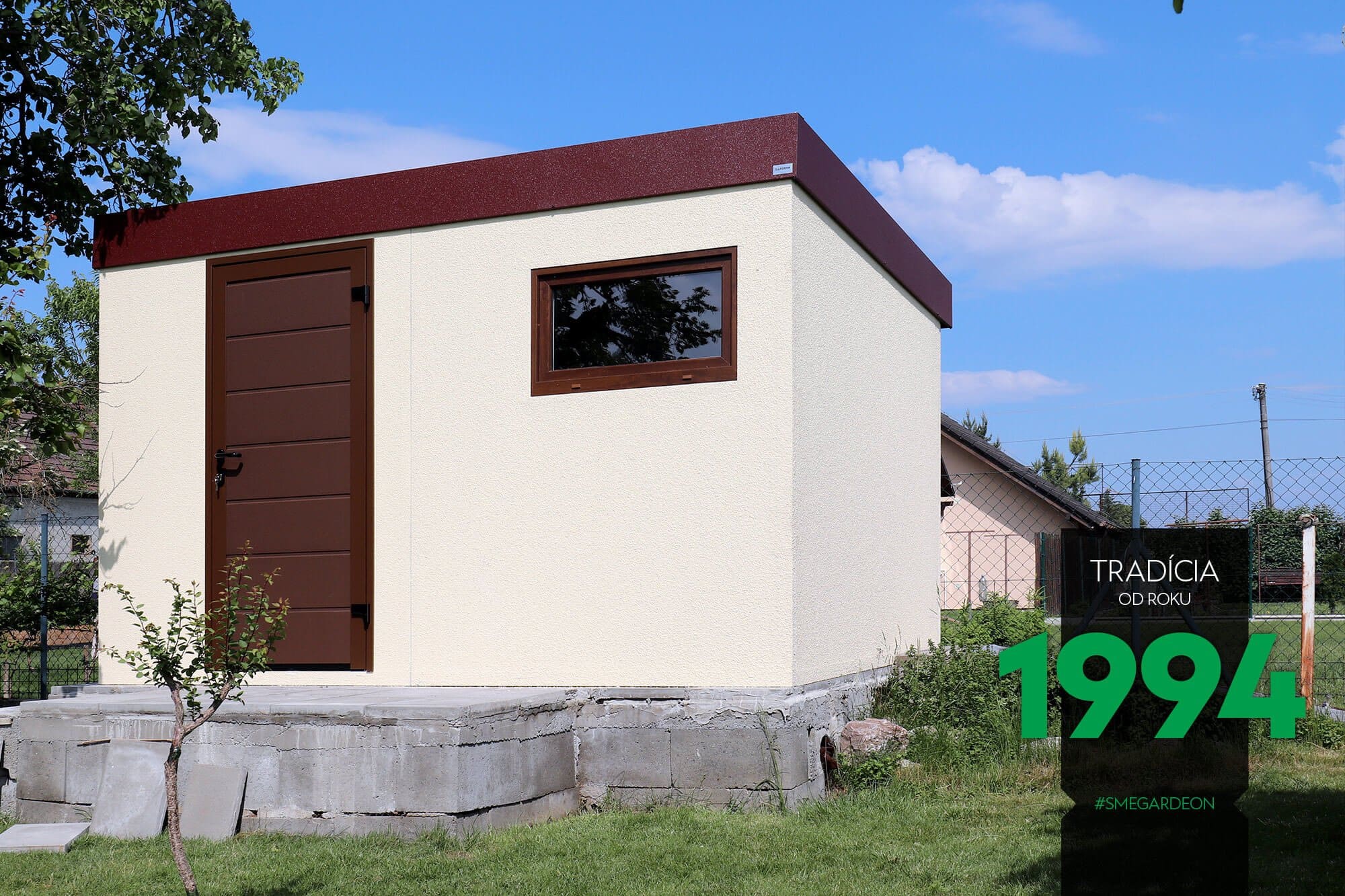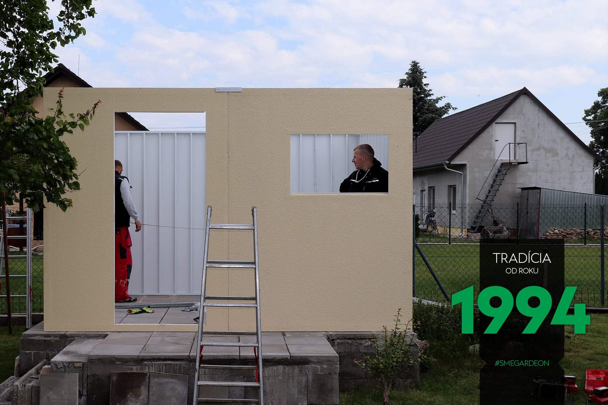 Montované zahradní domky GARDEON s venkovní omítkou jsou na pohled k nerozeznání od zděných staveb, při jejich realizaci však rozdíl oproti zdění jistě oceníte.