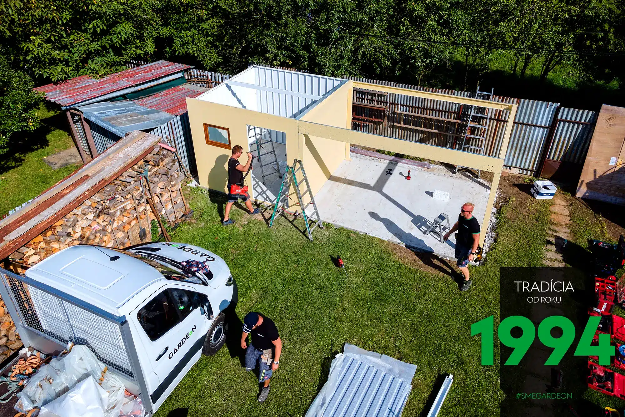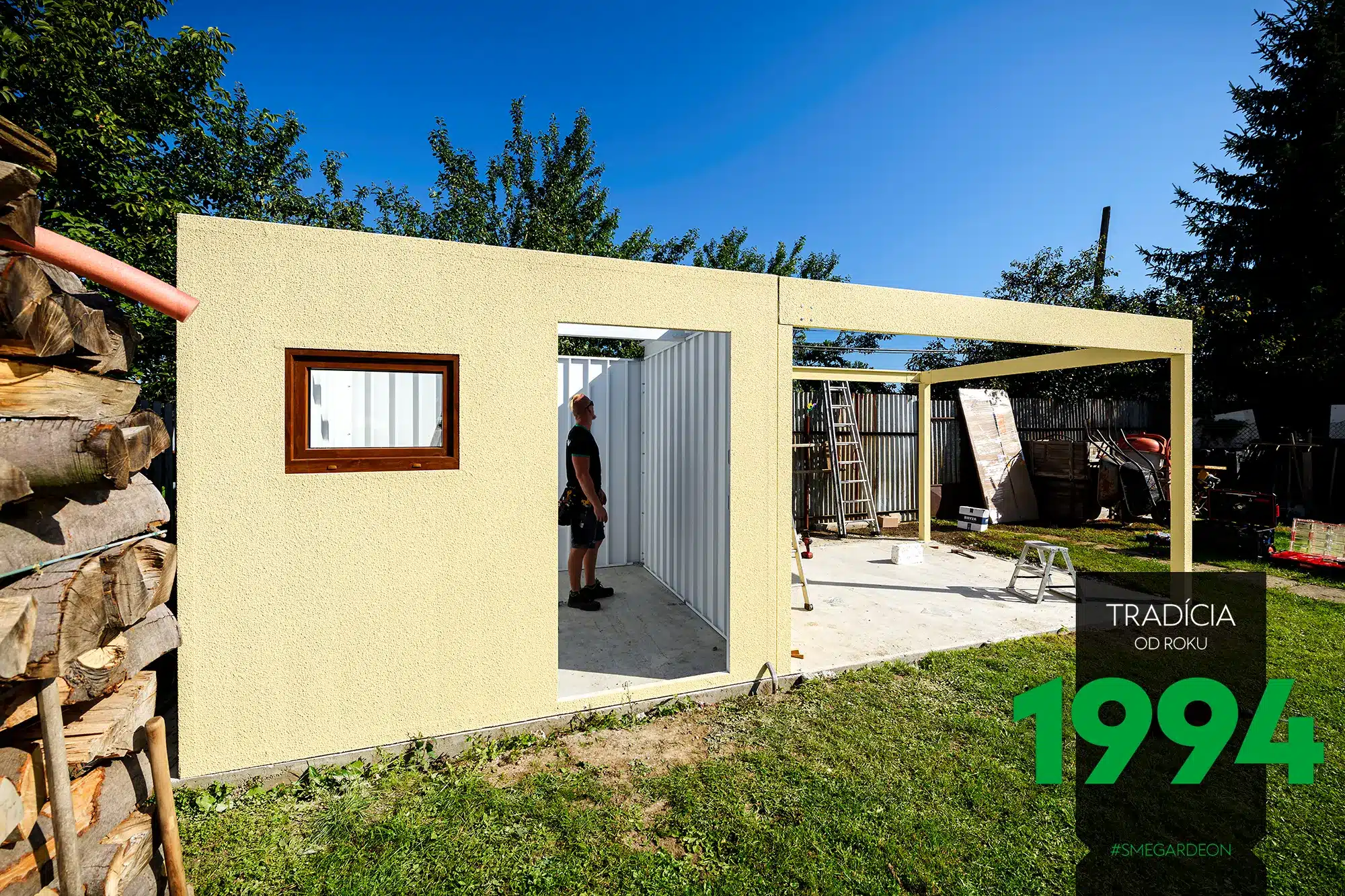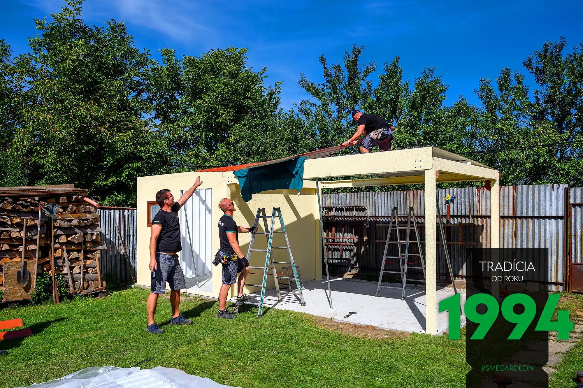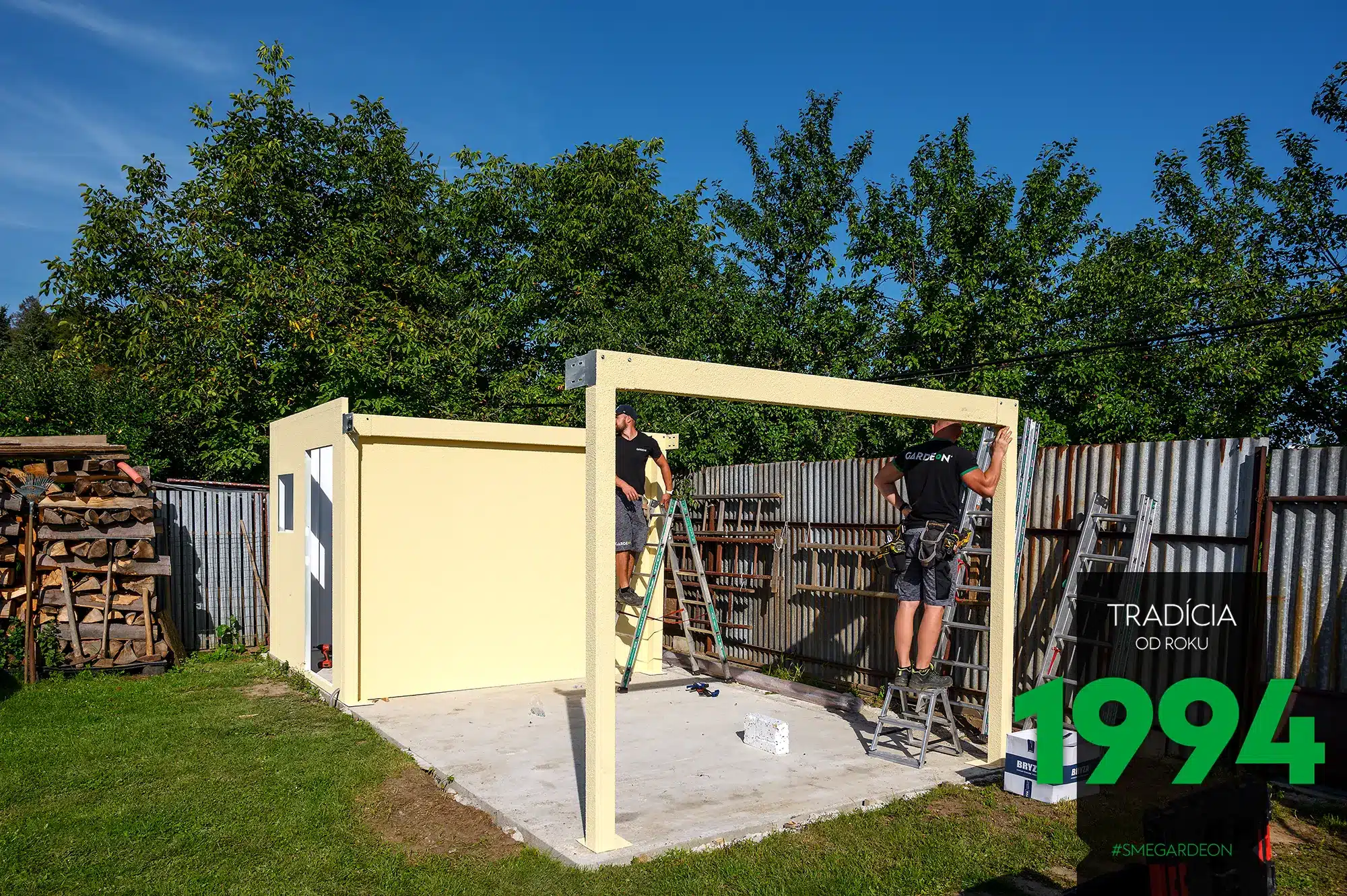 Montáž zahradního domku GARDEON s přístřeškem